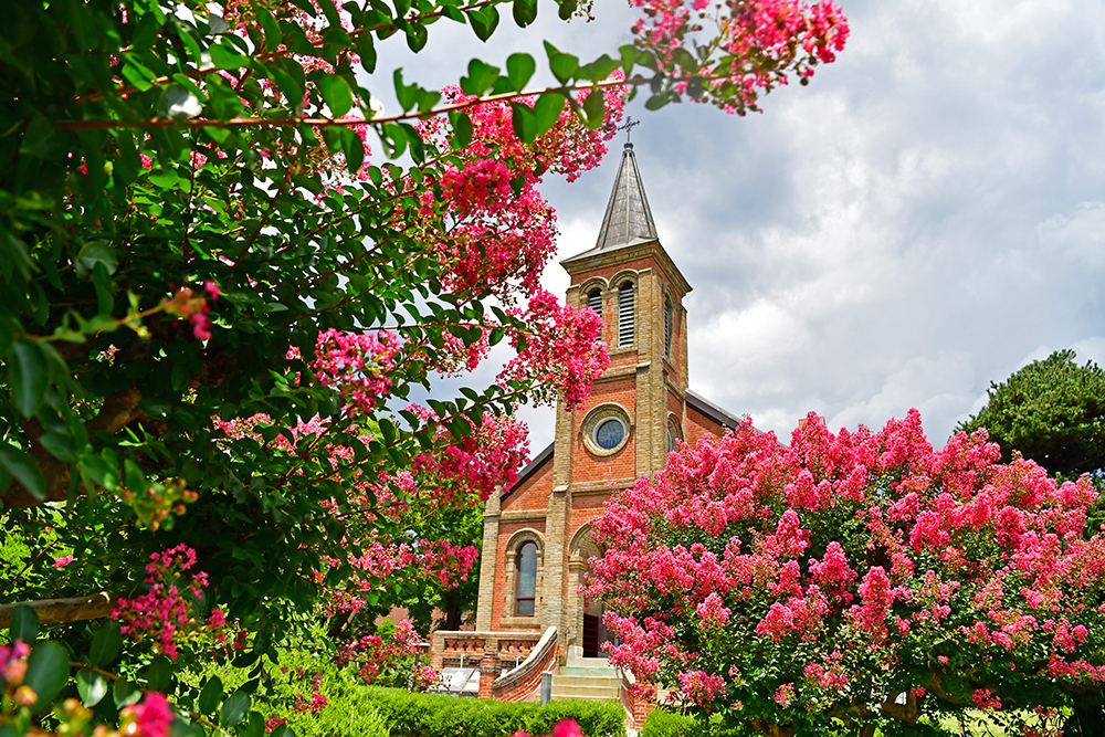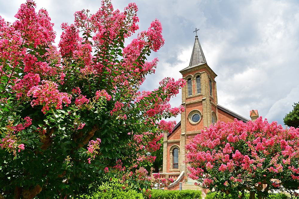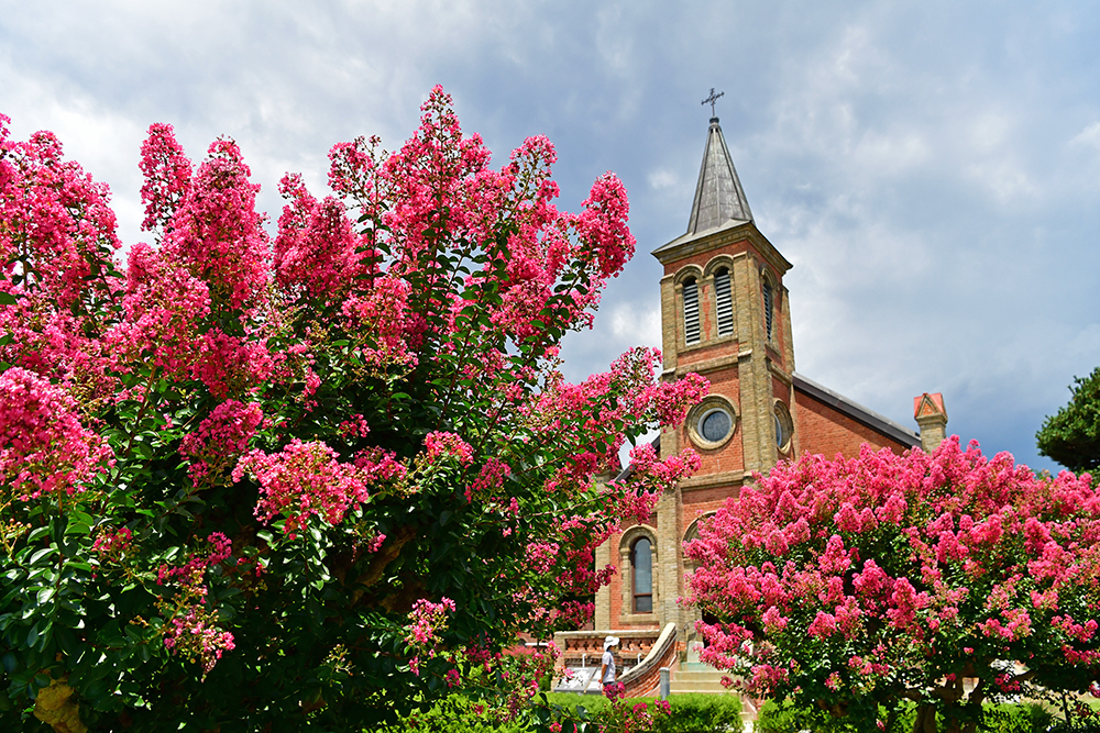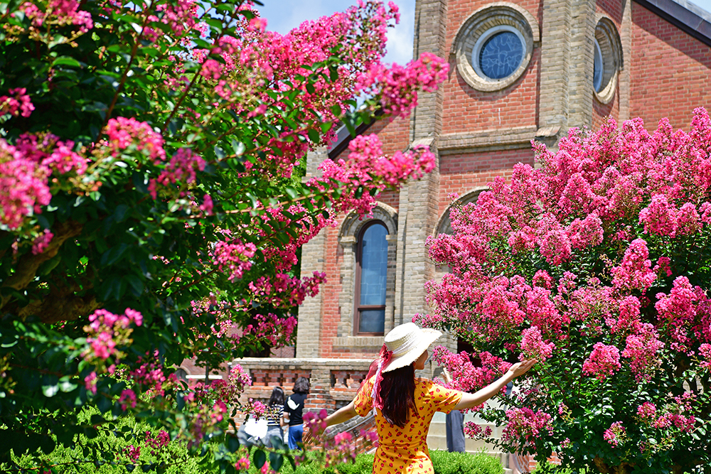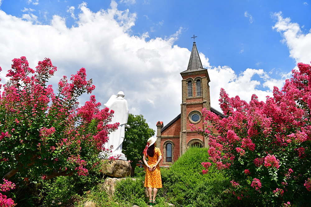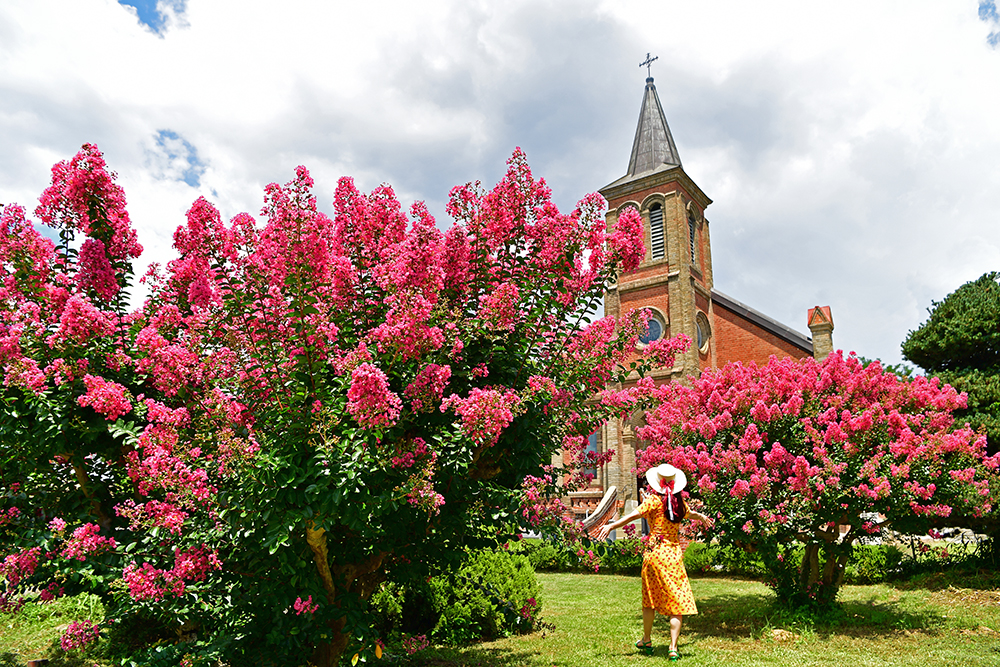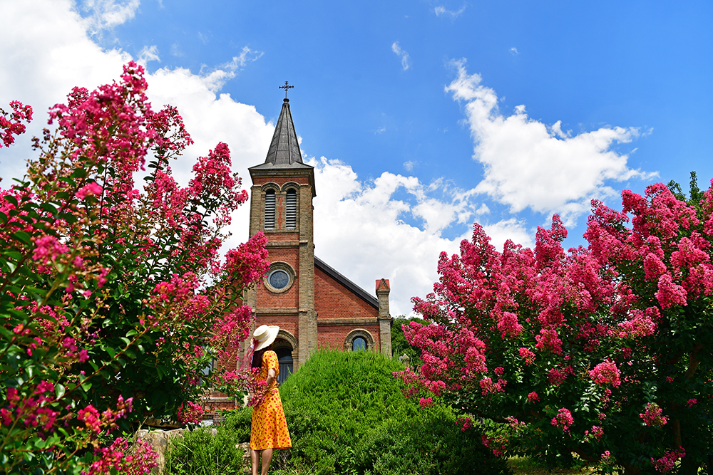 배롱나무는 전통 고택과 참 어울립니다. 우리네 정서와 잘 맞는 탓이겠죠^^ 그럼 배롱나무가 성당을 만났을때는 어떤 모습일까요? 이국적인 그 모습을 즐기기 위해 경북 칠곡의 가실성당을 찾았습니다.
