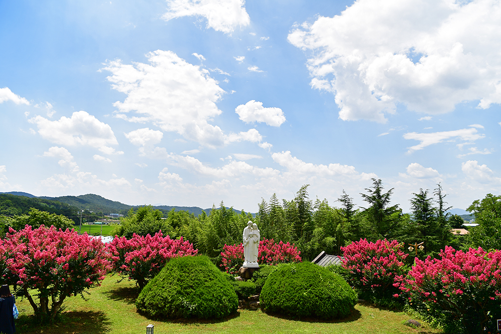 먼저 가실성당을 둘러봤습니다. 성당 입구에서 바라본 정원의 배롱나무 다섯그루가 아름답습니다.ㅎ 성당 안밖을 고루 들러 보면서 분위기를 느껴봅니다. 비록 천주교 신자는 아니지만, 가실성당의 조용한 분위기는 마음이 평온하게 만들어 줍니다.ㅎㅎ