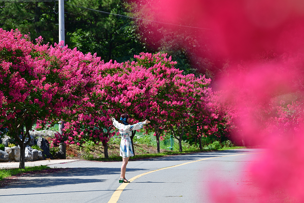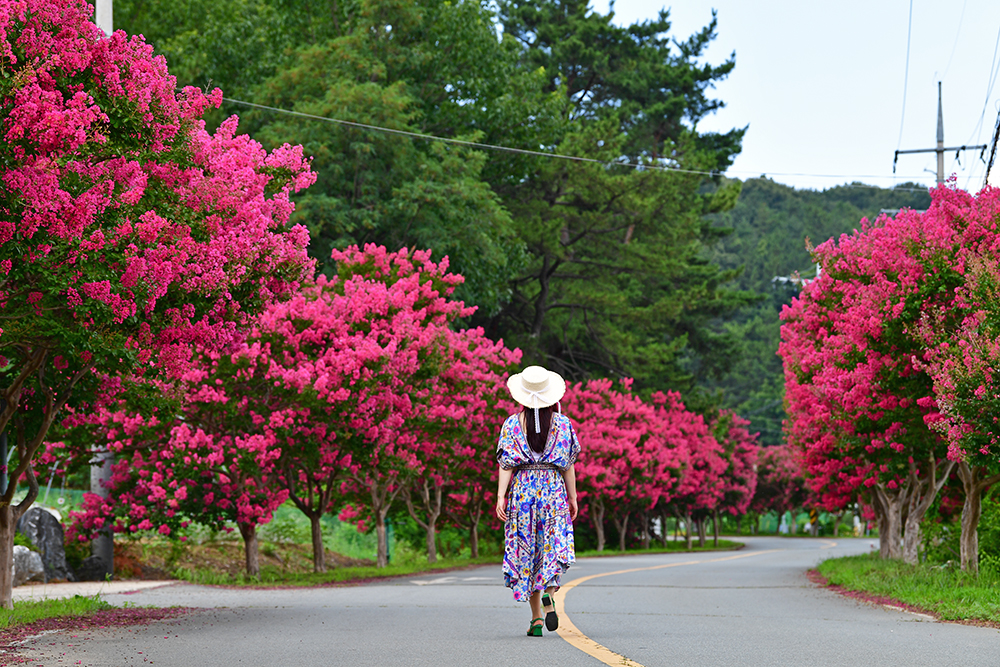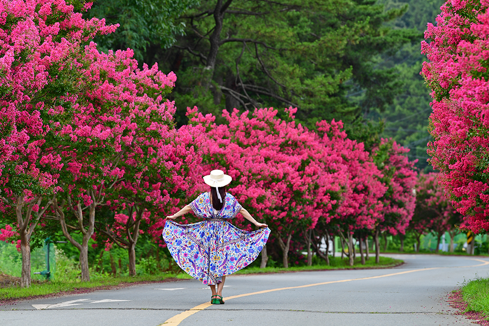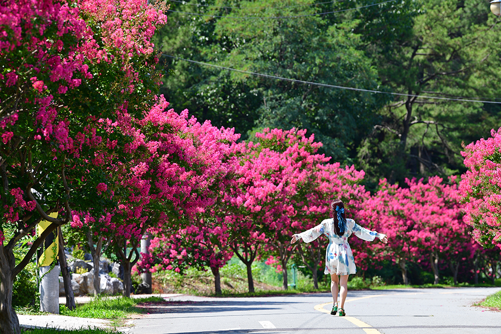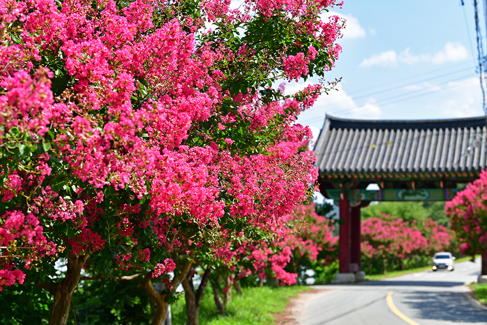 붉은 배롱나무가 장관을 이루는 가로수 길이 있습니다. 멋드러진 배롱나무가 도로 양옆으로 길게 늘어서 있는 대구 달성의 육신사 길입니다. 매혹적인 그 모습을 보는 순간 마음이 설레이지만, 우선 육신사부터 들러보기로 했습니다.