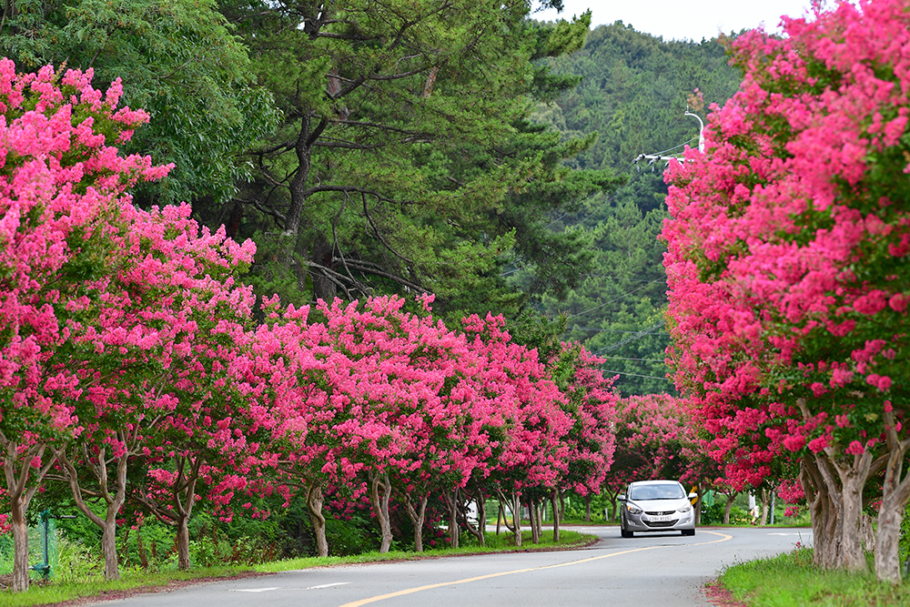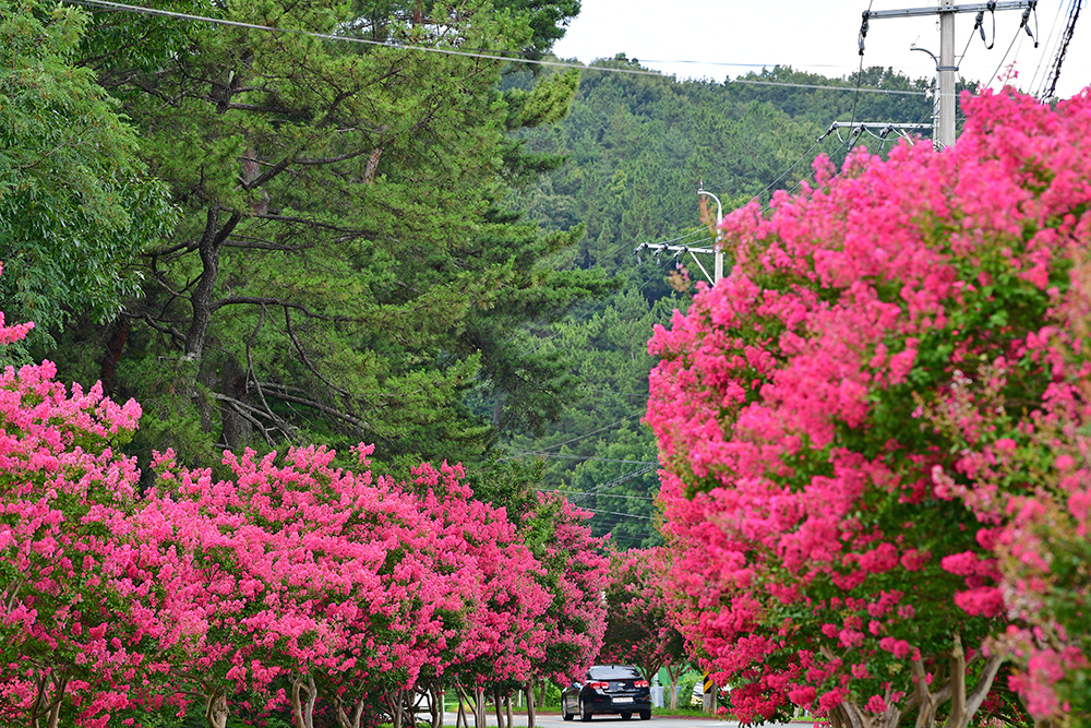 붉은 배롱나무 탓일까? 어쩌다 한 대씩 나타나는 차량들이 배롱나무와 참 잘 어울립니다. 그냥 찍어도 작품이 될것 같습니다. ㅎㅎ