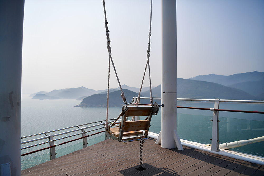 스카이워크 끝에 있는 그네입니다. 저 멀리 바다 위로 날아 갈듯한 모습이 정말 짜릿할 것 같습니다. 성인기준 4,000원의 비용이 있지만 이 날은 강풍 때문에 운행하지 않았습니다. 사실 전속모델께서 타보자고 하면 어쩌나하고 걱정했는데, 천만다행이었습니다.ㅋㅋ
