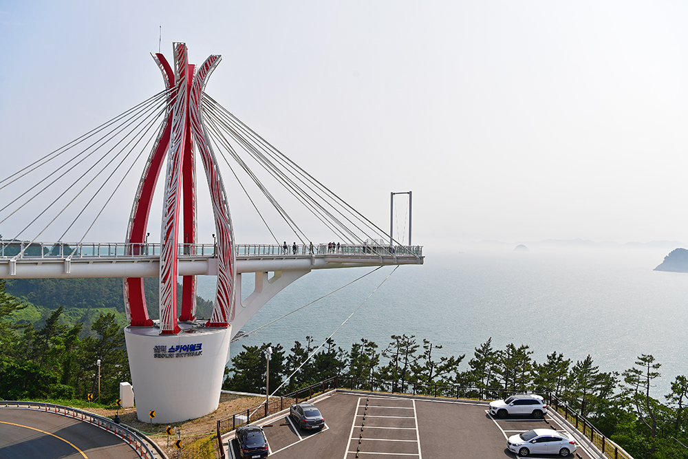 엘레베이트 문이 열리자 붉은색 구조물이 인상적인 설리 스카이워크가 눈에 들어옵니다.그 옆으로 눈부신 남해 바다가 펼쳐집니다. ㅎㅎ 다리를 건너 스카이워크로 향해 봅니다. ㅎ