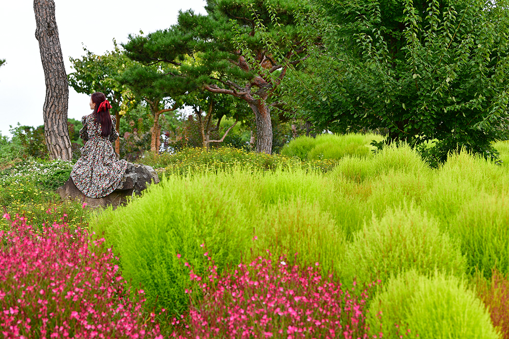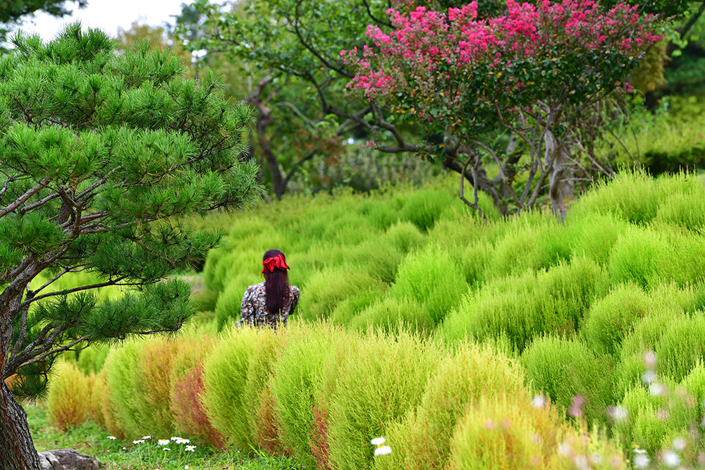 아무리 생각해봐도 댑싸리 군락지는 이곳이 전국에서 가장 아름다운 것 같습니다. 대부분 넓은 나대지를 이용하지만, 이곳처럼 멋진 조경을 갖춘 곳은 드물기 때문입니다. 그래서 또 다시 전속모델을 출동시켰습니다. 아름다운 댑싸리 군락지를 배경으로 여러 모습을 담아봅니다.