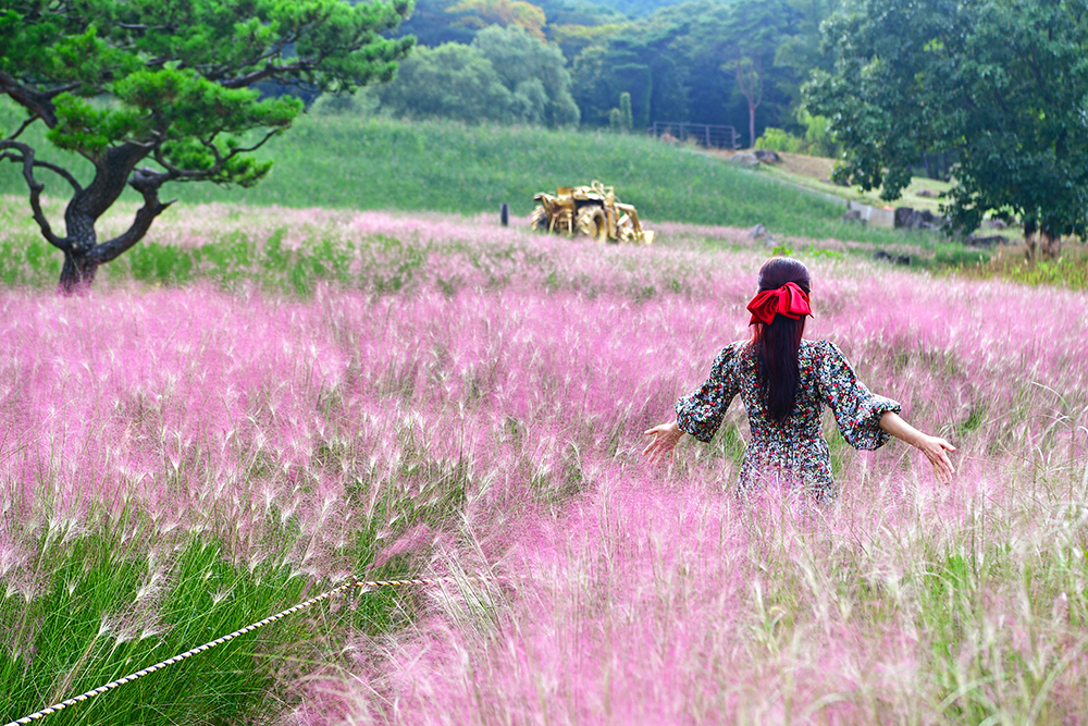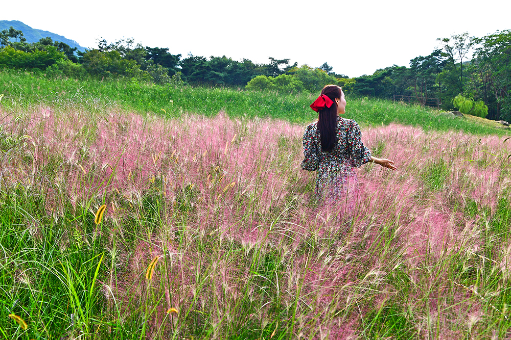 분홍빛으로 물든 핑크뮬리를 배경으로 전속모델을 담아봅니다. 이 일대가 전부 핑크뮬리가 군락지인데... 확실히 핑크뮬리가 좀 더 물들었으면 하는 아쉬움은 남네요....ㅎㅎ