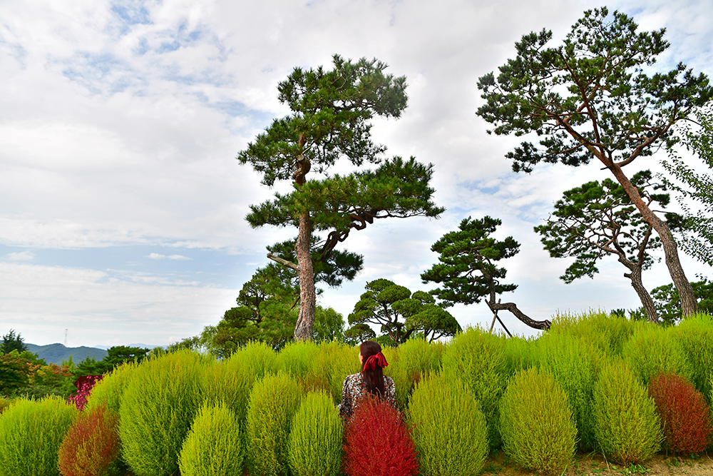 아무리 생각해봐도 댑싸리 군락지는 이곳이 전국에서 가장 아름다운 것 같습니다. 대부분 넓은 나대지를 이용하지만, 이곳처럼 멋진 조경을 갖춘 곳은 드물기 때문입니다. 그래서 또 다시 전속모델을 출동시켰습니다. 아름다운 댑싸리 군락지를 배경으로 여러 모습을 담아봅니다.