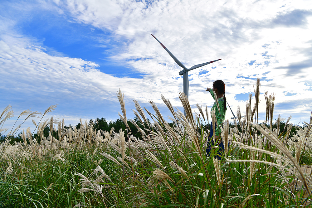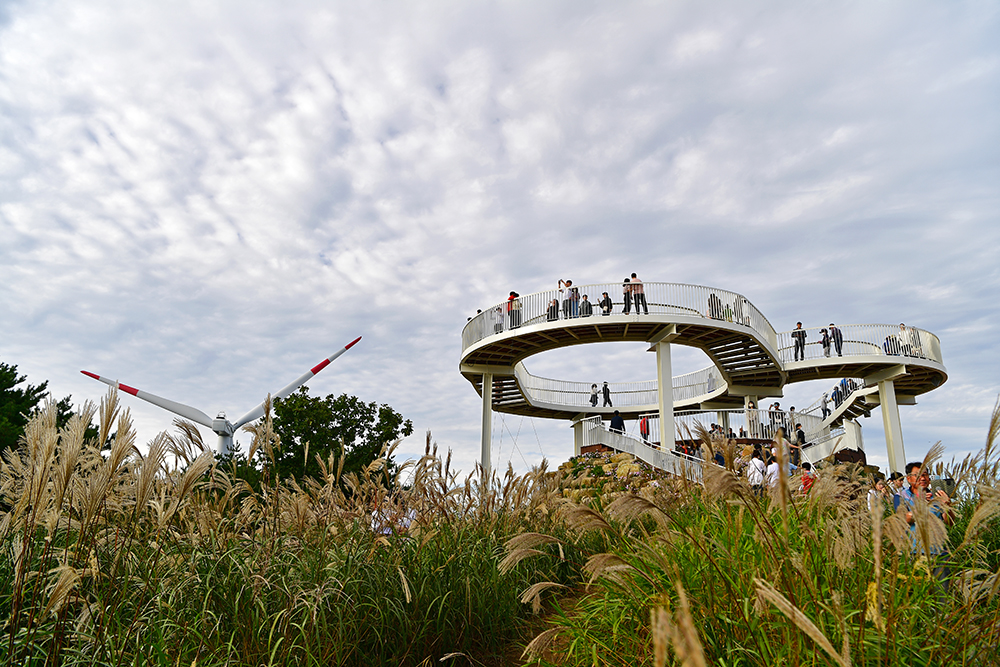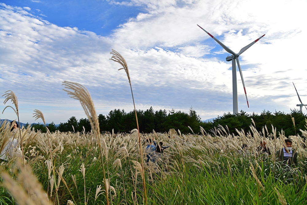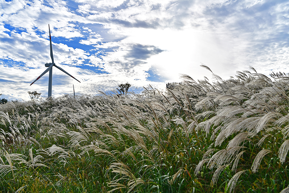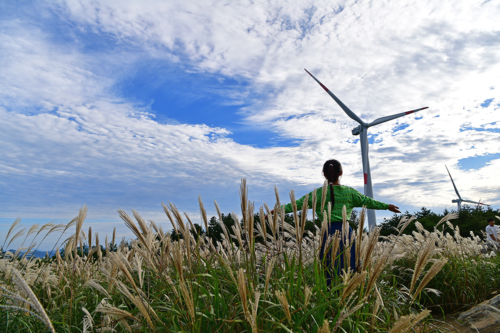 축제장의 전반적인 모습을 조망한 후 억새 군락지로 내려왔습니다. 풍력 발전기와 억새를 배경삼아 가을의 정취를 느껴 봅니다. ㅎ