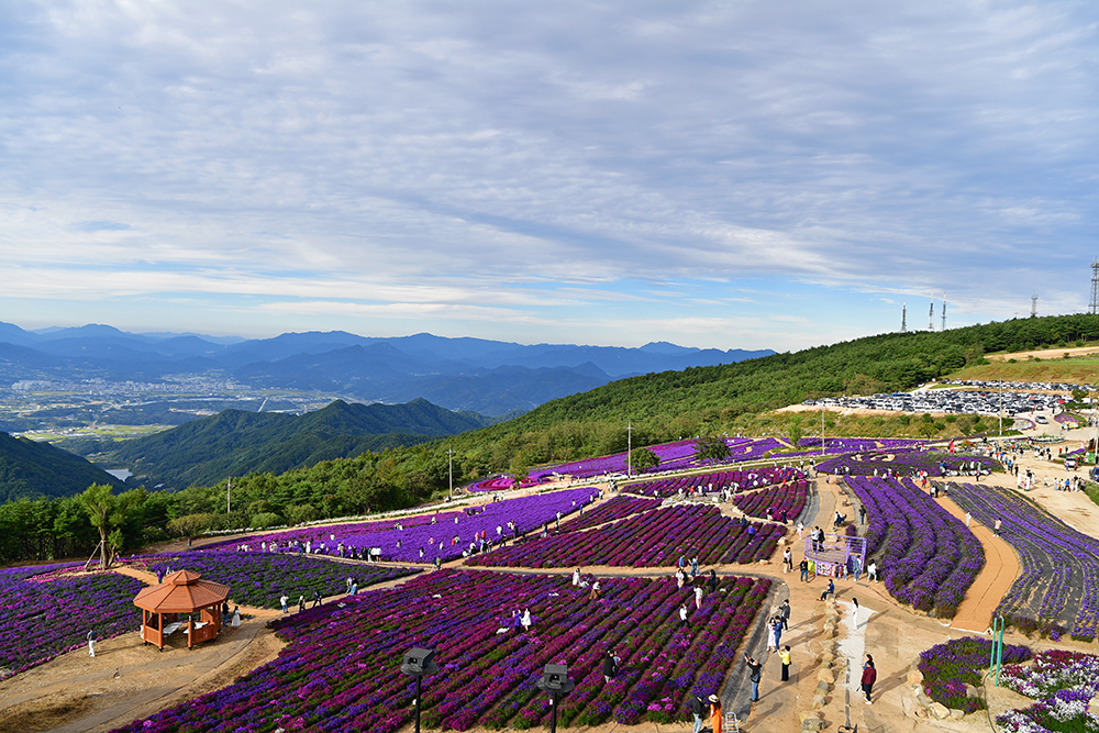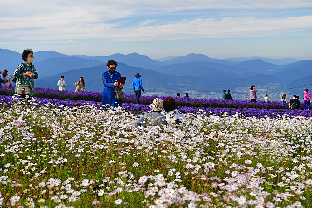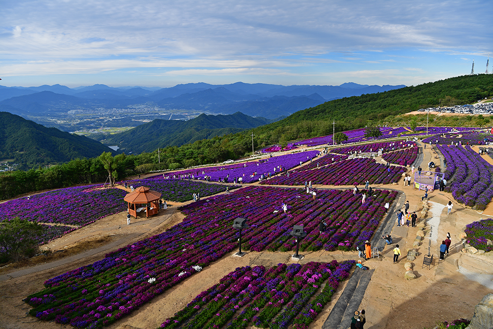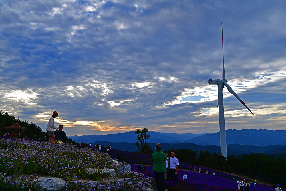위드코로나가 일상이 되면서 전국 곳곳에서 많은 축제를 하고 있습니다. 경남 거창에서도 10월 3일까지 '감악산 꽃&별 여행' 축제가 펼쳐지고 있죠. 보라빛 아스타 국화가 만개한 감악산을 즐기기 위해 늦은 오후에 감악산을 찾았습니다. 2년전 처음 방문했을 때, 관계자분께서 노을질 때 와보라는 말씀이 기억났기 때문입니다.