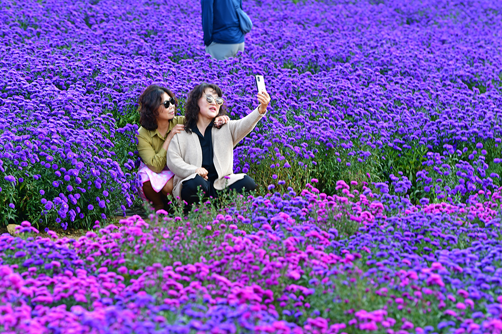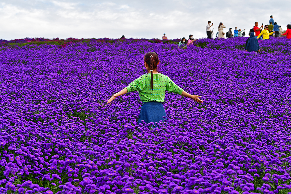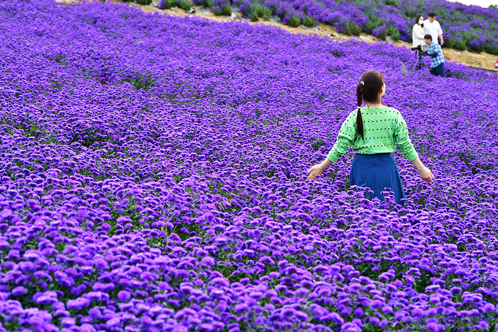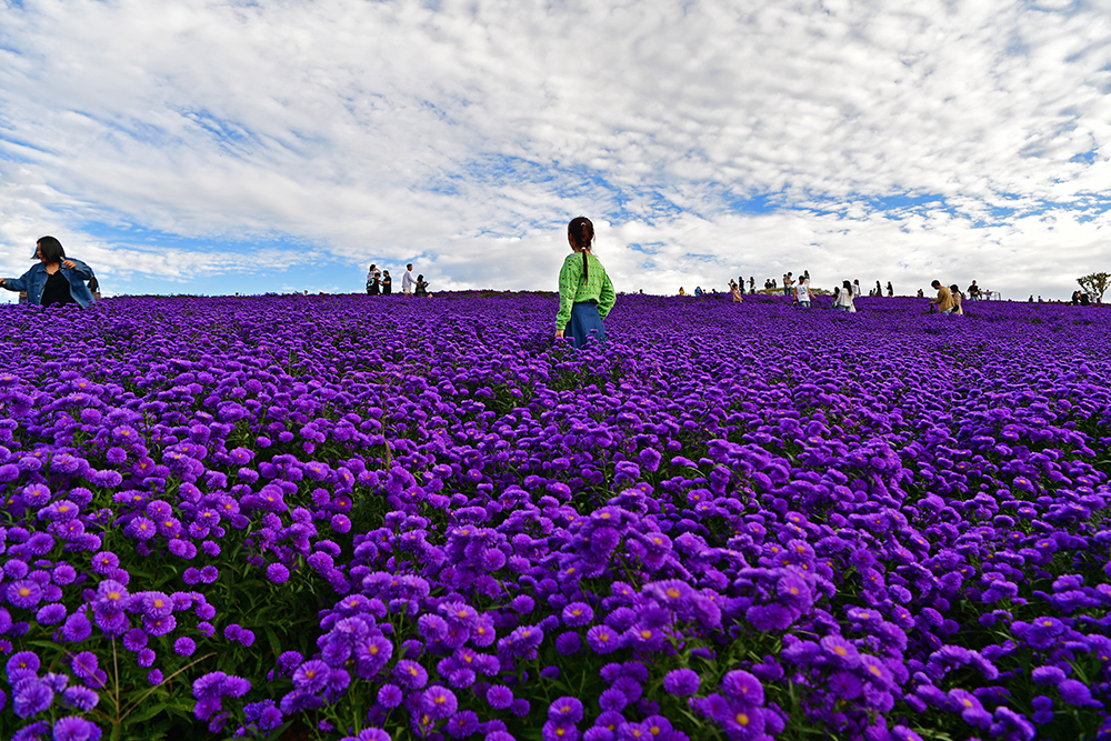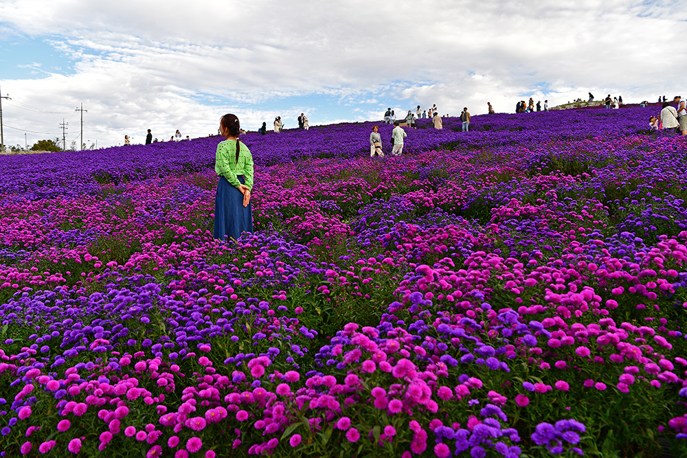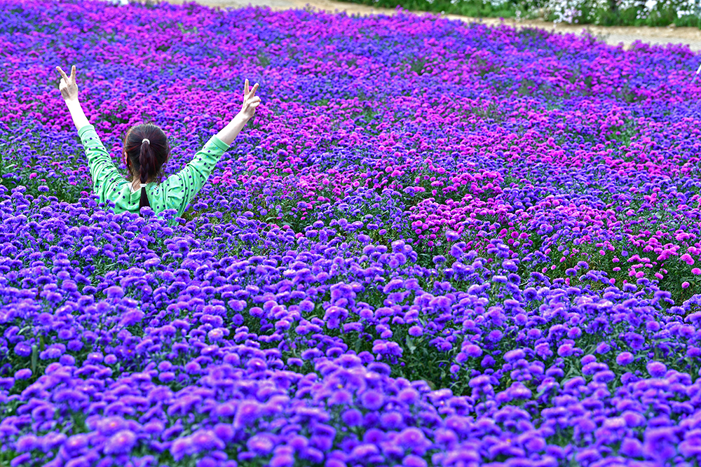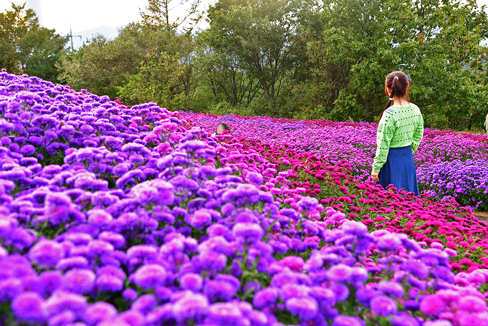 메인 아이템인 아스타국화 군락지를 찾았습니다. 보라빛은 물론이고 분홍빛과 푸른 빛의 국화가 아주 매혹적입니다. 게다가 해가 없는 반대 방향으로는 파란 하늘과는 멋진 대비를 보여줍니다