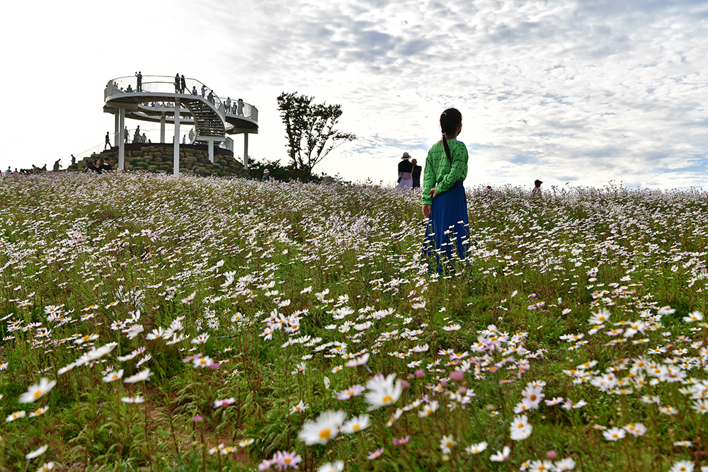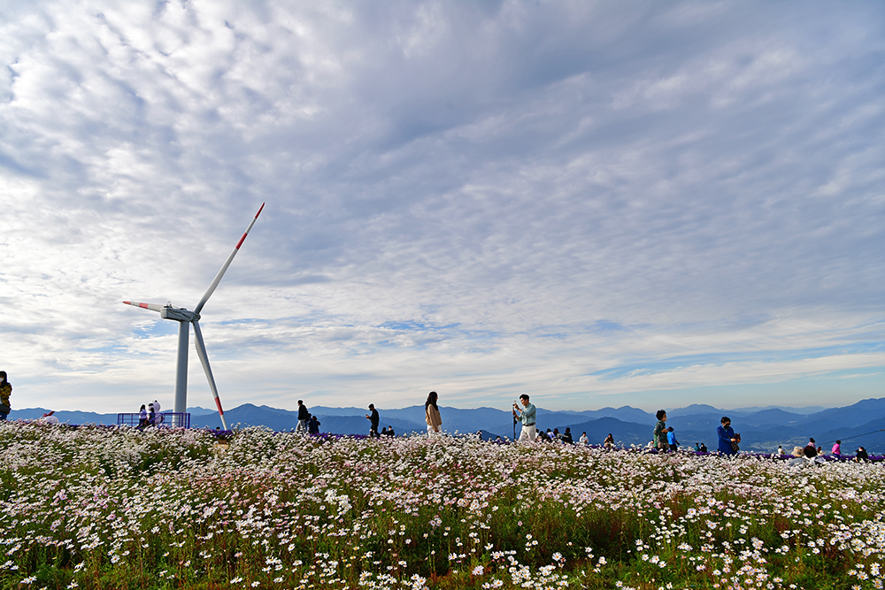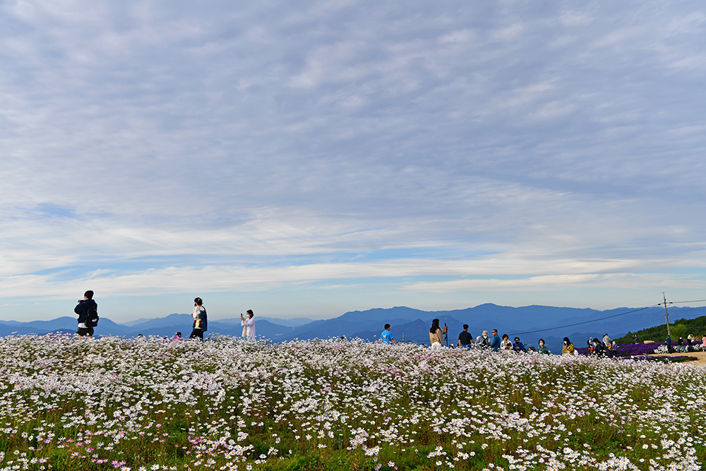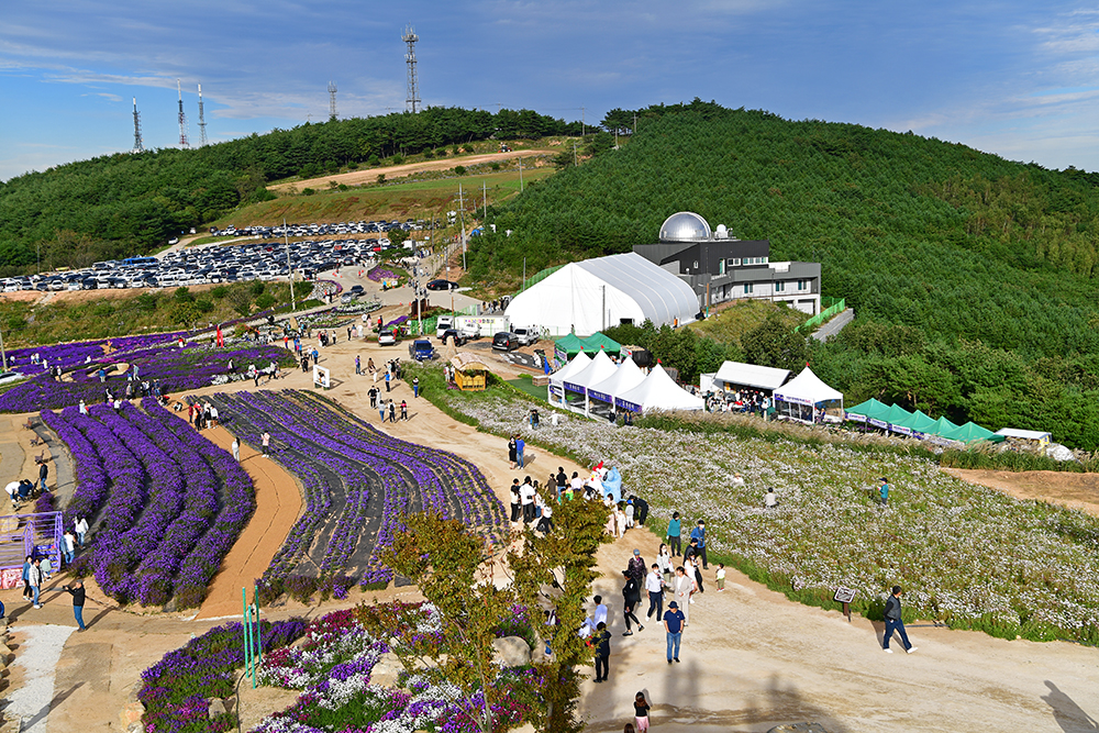 먼저 전망대에 올라 축제장 주변을 조망해봅니다. ㅎ 멀리 거창읍내을 비롯해 아스타 국화, 억새, 구절초 군락지등을 살펴봅니다. 다양한 시설들도 보이는데요, 늦은 시간임에도 많은 분들께서 축제를 즐기는 모습이 인상적입니다. ㅎ