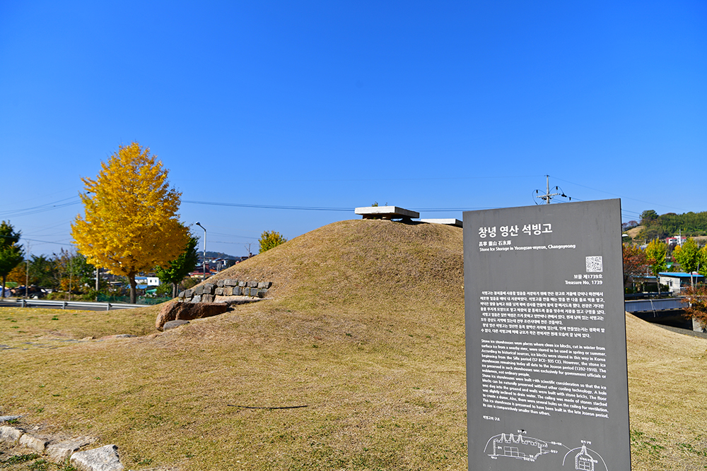 보물 제1739호 지정된 창녕 영산 석빙고의 안내판을 먼저 읽어봅니다. 봄여름에 사용될 얼음을 저장하는 창고가 석빙고입니다. 석빙고의 기능과 제작 과정을 읽어보니 새삼 조상들의 지혜가 놀랍습니다.