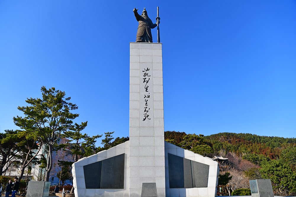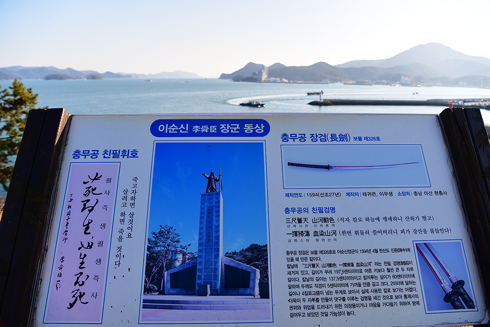 메타쉐콰이어 길을 지나니 이순신 장군 동상이 나타납니다. 웅장한 모습이 동상이 참 멋집니다. '필사즉생(必死卽生), 필생즉사(必生卽死)'라른 문구가 살짝 거슬립니다. 왜냐며하면 이 말은 명량해전을 앞두고 한 말인데, 한산의 현장이 있다는 것이 좀 아쉽네요..^^