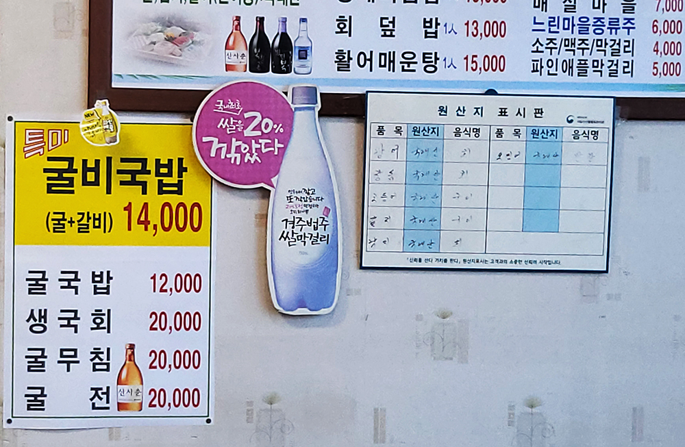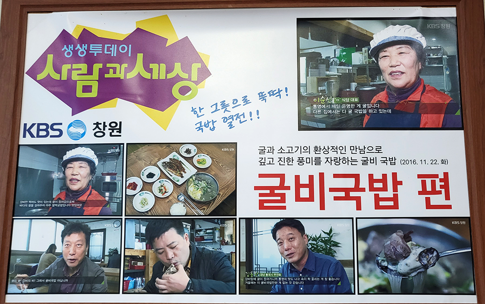 다른 벽 한켠에 방송화면이 있습니다. 2016년 11월22일에 생생투데이 사람과세상에 출연했습니다. '굴과 소고기의 환상적인 만남으로 깊고 진한 풍미를 자랑하는 굴비 국밥'이란 설명이 있습니다. 아하.. 굴 국밥에 갈비를 넣은 것이 굴비국밥입니다. 어떤 맛일이지 그 맛이 더 궁금해 집니다.
