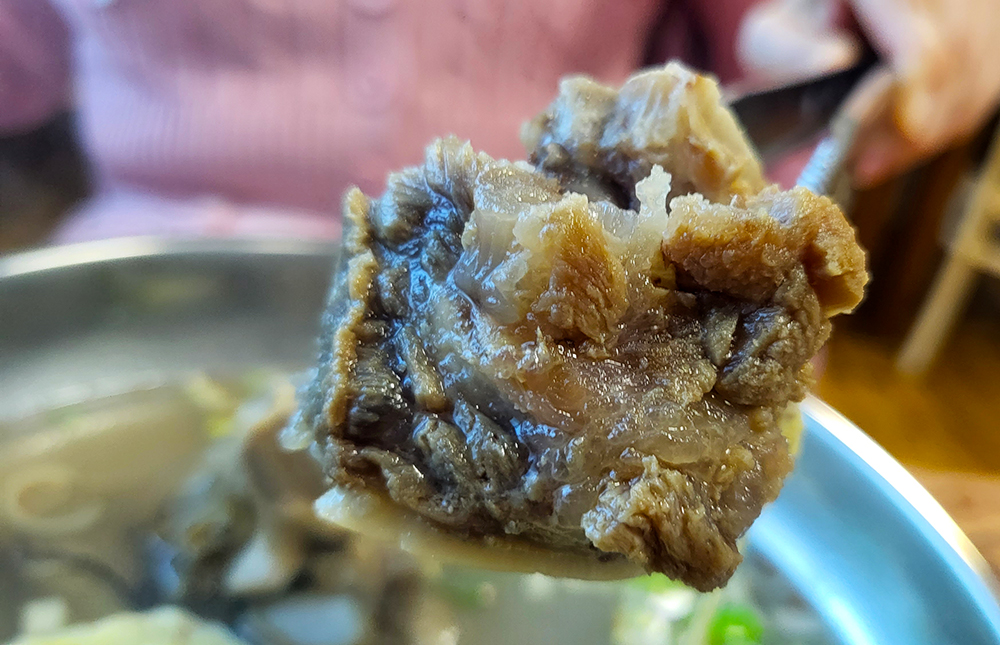 밥을 말은 후 갈비를 먼저 먹어 봅니다. 살점이 부드럽게 분리되면서 살살 녹는 것이 너무 맛있습니다. ㅎㅎ