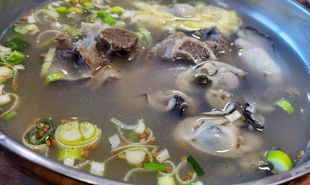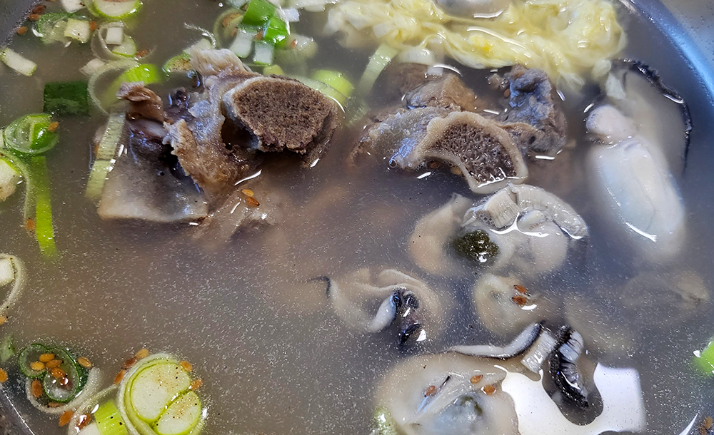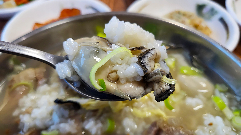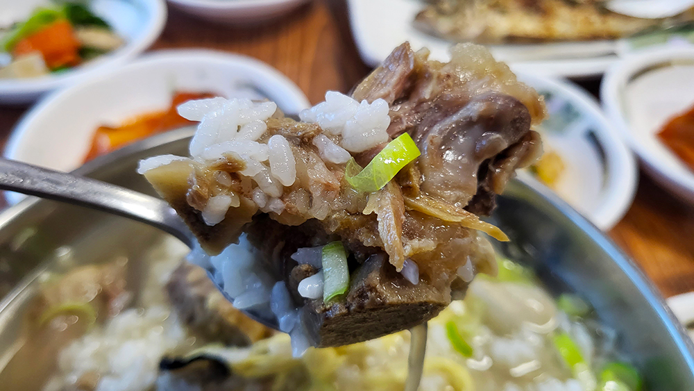 굴비국밥을 영접해 봅니다. 비쥬얼은 영판 '굴국밥에 갈비가 빠졌을때' 입니다. ㅋㅋ 국물을 먼저 먹어봅니다. 갈비탕 같기도 하고 굴 국같기도 하고... 바닷 내음 가득한 풍미가 느껴집니다. ㅎㅎ