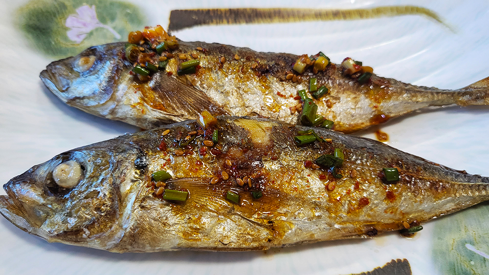매가리 구이가 나옵니다. 오랜만에 접하는 녀석입니다. 매가리라고 하면 잘 모를수 있습니다. '전갱이'를 통영 지방에서는 '매가리'로 부릅니다. 고등어와 비슷한데 굽거나 조림으로 먹으면 참 맛있는 생선입니다. ㅎ