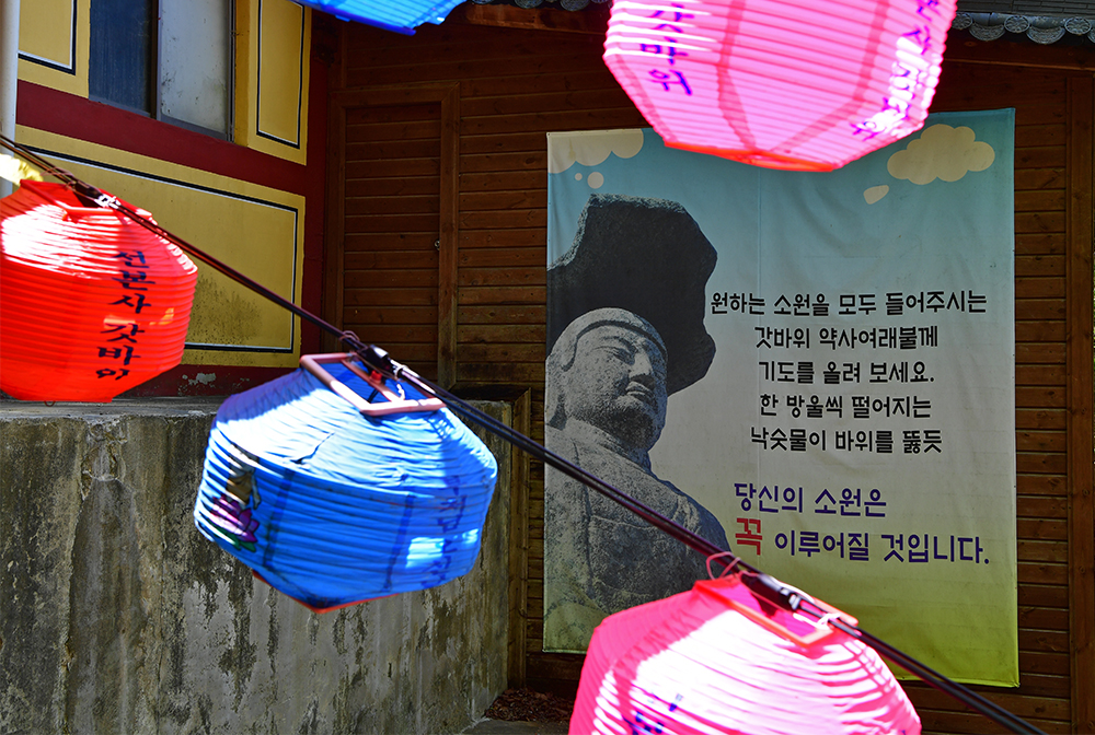 숨을 헉헉거리며 한참을 오르니 공양간이 나타납니다. 예전에는 내방객들에게 공양을 제공했지만, 오래되고 낡아 신축 공사를 하느라 폐쇄했다고 합니다. 공양간을 지나 가는데 '당신의 소원은 꼭 이루어 질 것입니다' 라는 현수막이 눈에 띕니다. 그래서 공양간 앞 기도처에서 딸 아이가 시험 잘치도록 기도를 해봅니다...