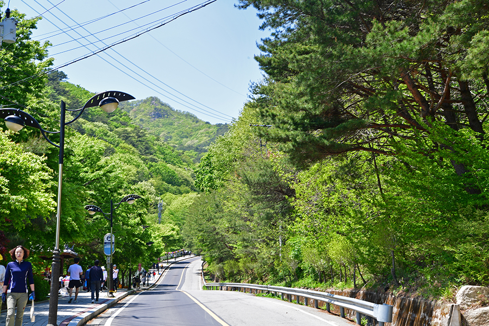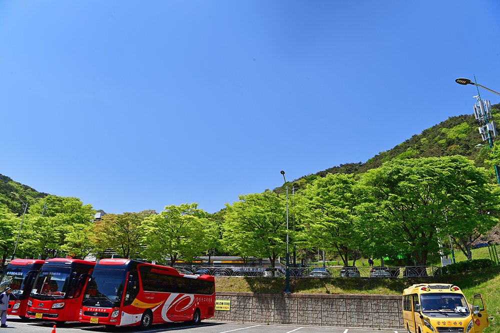 경산쪽에서 올라가려면 '관음휴게소' 를 이용해야 합니다. 일주문까지 셔틀버스를 운행하는데, 휴게소에서 커피나 음료등을 사면 무료 탑승이 가능합니다. 하지만 걸어 가기로 했습니다. 날씨도 좋을 뿐만아니라 걸어서 대략 10여분 거리이기 때문입니다.
