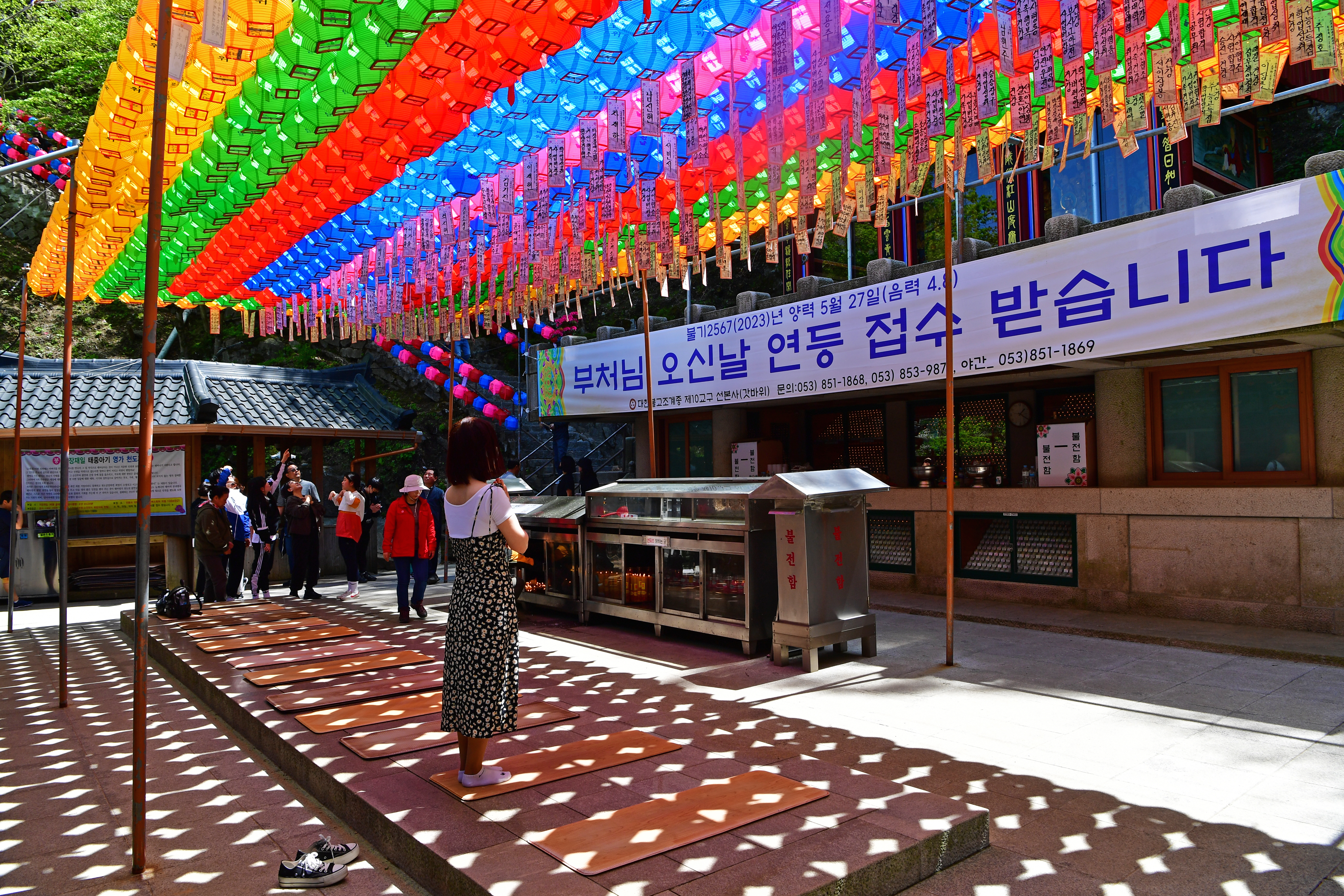 기도처 위에 설치된 연등 행렬이 장관입니다. 야외임에도 실내같은 분위기가 느껴질 정도입니다. 아울러 시원한 그늘까지 제공해주네요.ㅎ 많은 분들께서 매트 위에서 기도를 올리고 있습니다. 수시로 들고나는 중이라, 빈 매트를 찾아서 저희도 경건하게 기도를 올려 봅니다.ㅎ