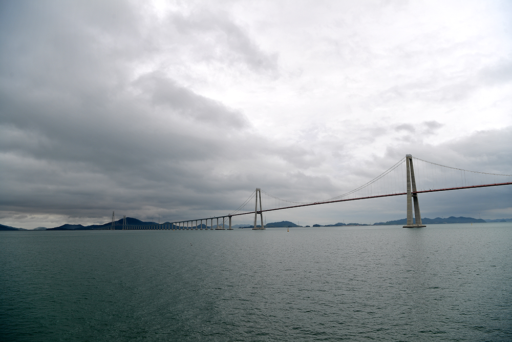 배를 타고 40여분 거리의 소악도 선착장으로 향합니다. 비가 올듯한 궂은 날씨지만 다행히 바람은 없습니다. 잘 아시겠지만, 배는 비 보다는 바람이 무섭죠..ㅎ 출발 후 얼마되지 않아 천사대교를 만납니다. 끝없이 이어지는 천사대교의 웅장한 모습에 감탄이 절로 납니다. ㅎㅎ