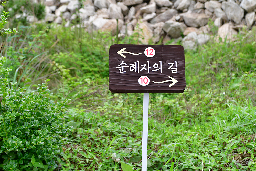 ▼ 순례길의 이정표! 왼쪽은 '12번. 지혜의 집', 오른쪽은 '10번. 사랑의 집' 가는길~~^^