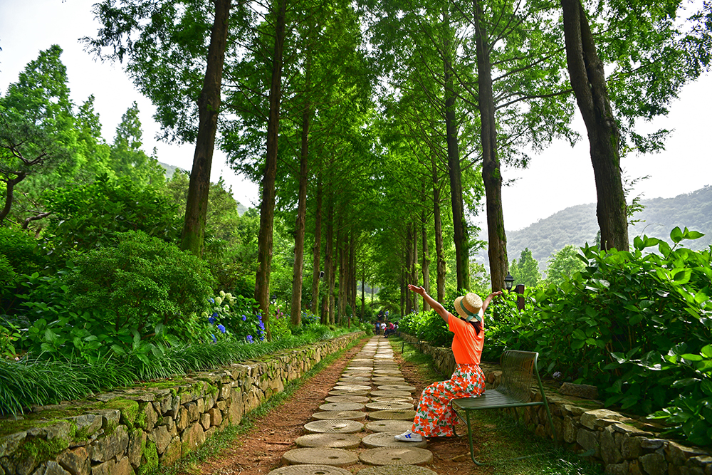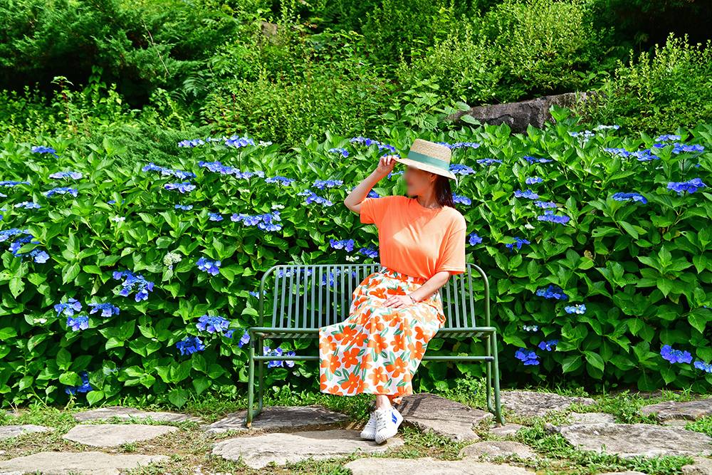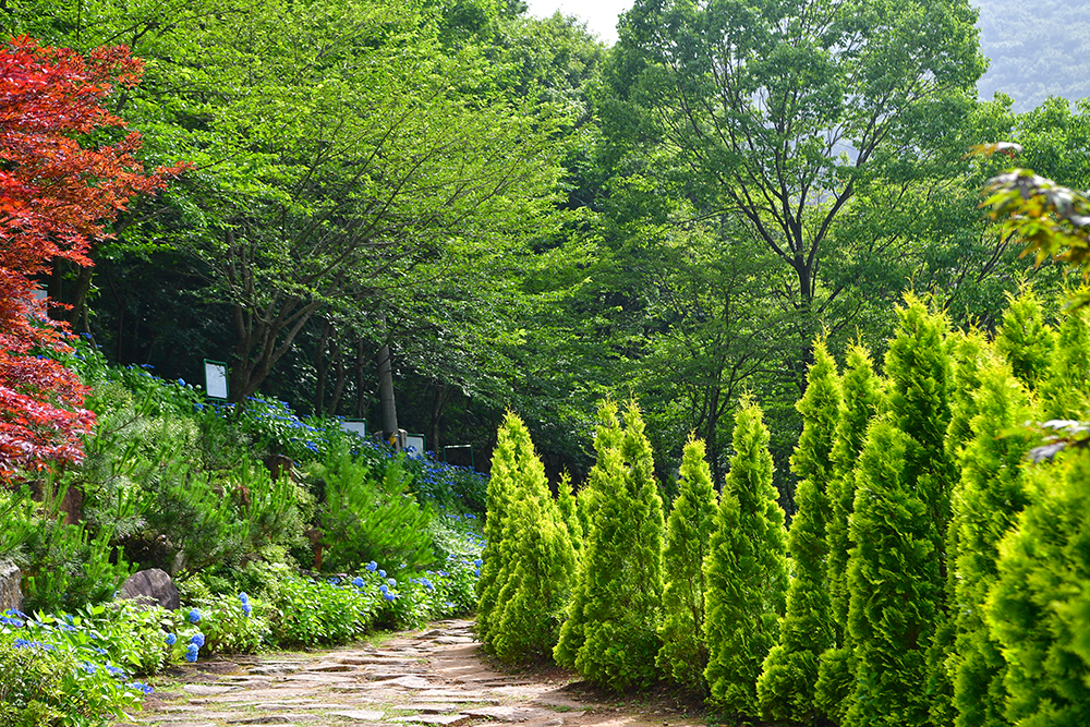 메타세콰이어 길이 끝나는 지점에 수국정원이 있습니다. 당연히 방문객들이 많습니다. 대부분 푸른색 수국 일색이라 아주 독특합니다. 푸른 빛이 아름다운 수국 사이로 들어가 즐거운 시간을 가져 봅니다. ㅎ