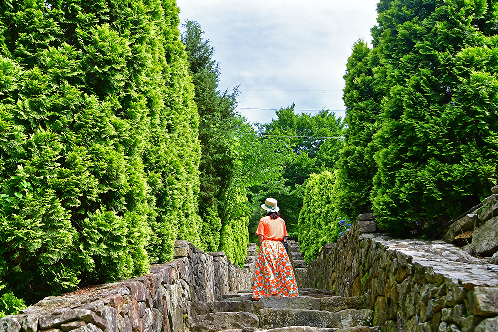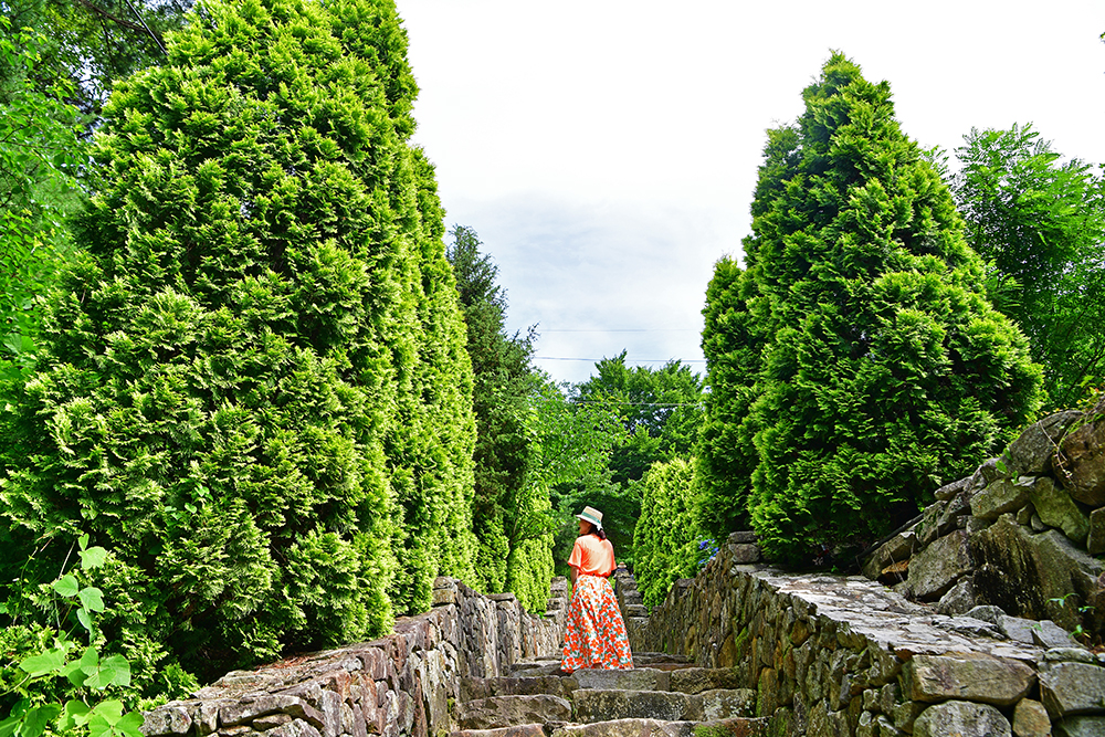 다음은 잔디광장 옆에 위치한 돌계단 입니다. 돌 계단을 따라 조성된 조경수들이 이국적인 분위기를 자아내는 곳입니다. 그레이스 정원의 핫플이라 사람들을 피해서 단독샷을 담아 보려는데 쉽지가 않네요~~^^ 그래도 굿굿하게 담아봤습니다. ㅎㅎ