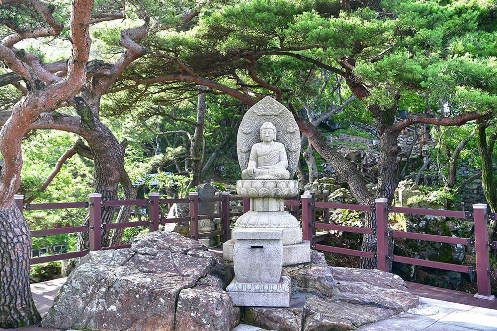 남해 바다와 어우러진 절경을 즐겨 봅니다. 하지만 연무탓인지, 알 수 없는 뿌연 날씨로 인해 청명한 풍경을 볼 수 없어 못내 아쉬웠습니다. 하지만 보현사 약사전의 약사여래상의 모습은 선명하게 보입니다. ㅎ