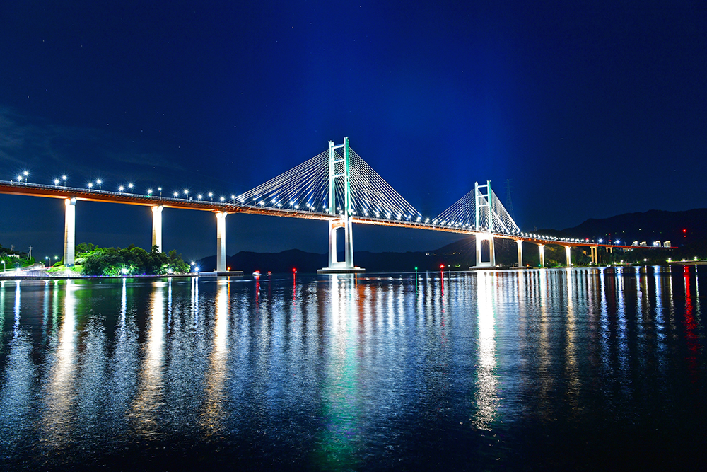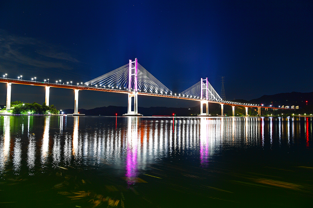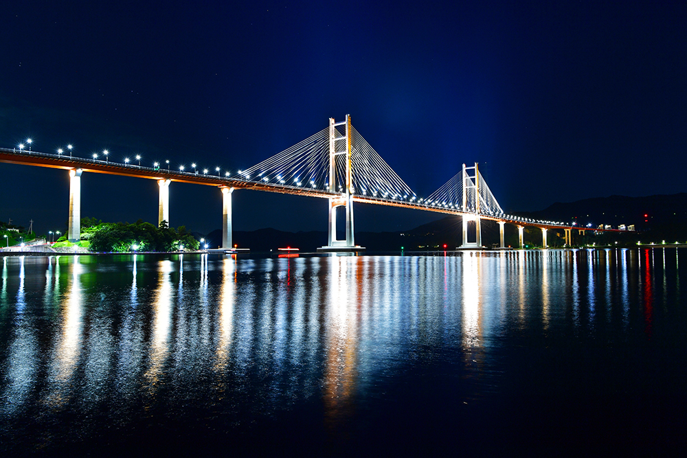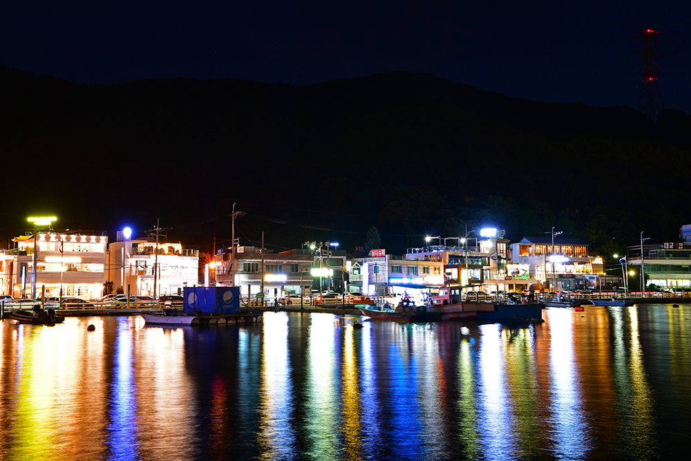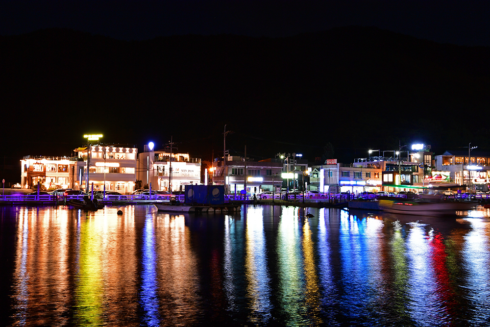 마창대교이 야경을 즐긴 후 다시 돌아 나오는 길에 마산 야경이 눈에 들어 옵니다. 바다 위에 비치는 조명빛이 참 아름답습니다. 그 모습이 살포시 담아봅니다. ㅎ
