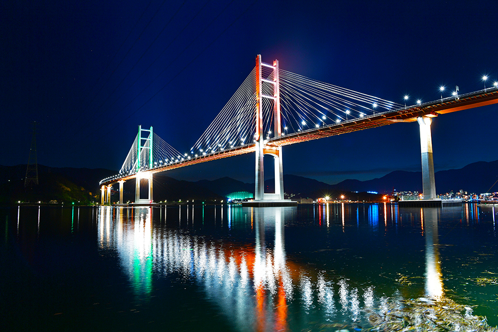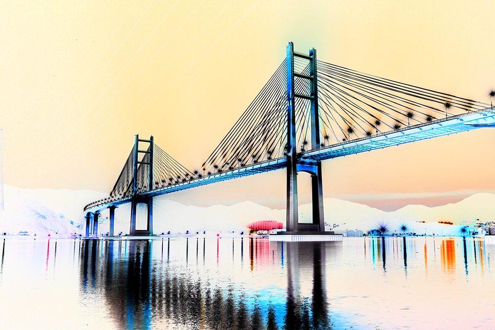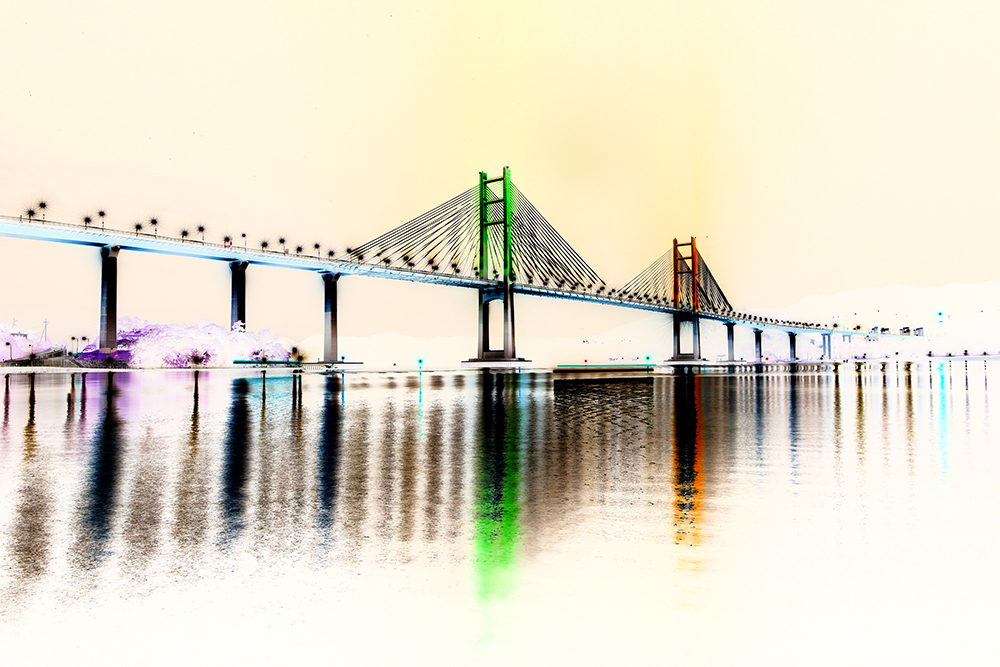제 나름 '반전매력'이란 미명 하에 사진을 즐기는 방법이 있습니다. 사진을 반전시키는 것입니다. 그래서 마창대교 야경 모습을 반전시켜 봤더니... 역시나 독특한 모습이 참 재밌습니다. ㅎㅎ