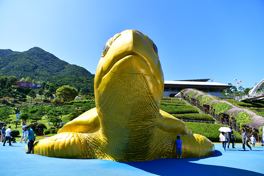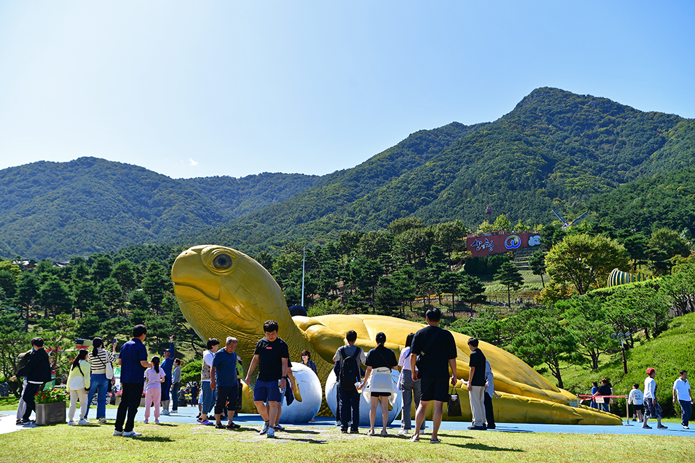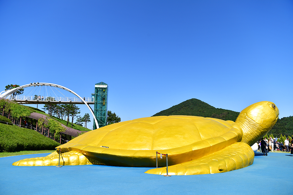 곰 광장 옆에는 대형 '황금 거북이' 조형물이 있습니다. 장수를 상징할 테죠~~^^ 많은 분들께서 대형 황금 거북이 앞에서 인증샷을 담습니다. 당연히 한 컷 담아 봅니다. ㅎ