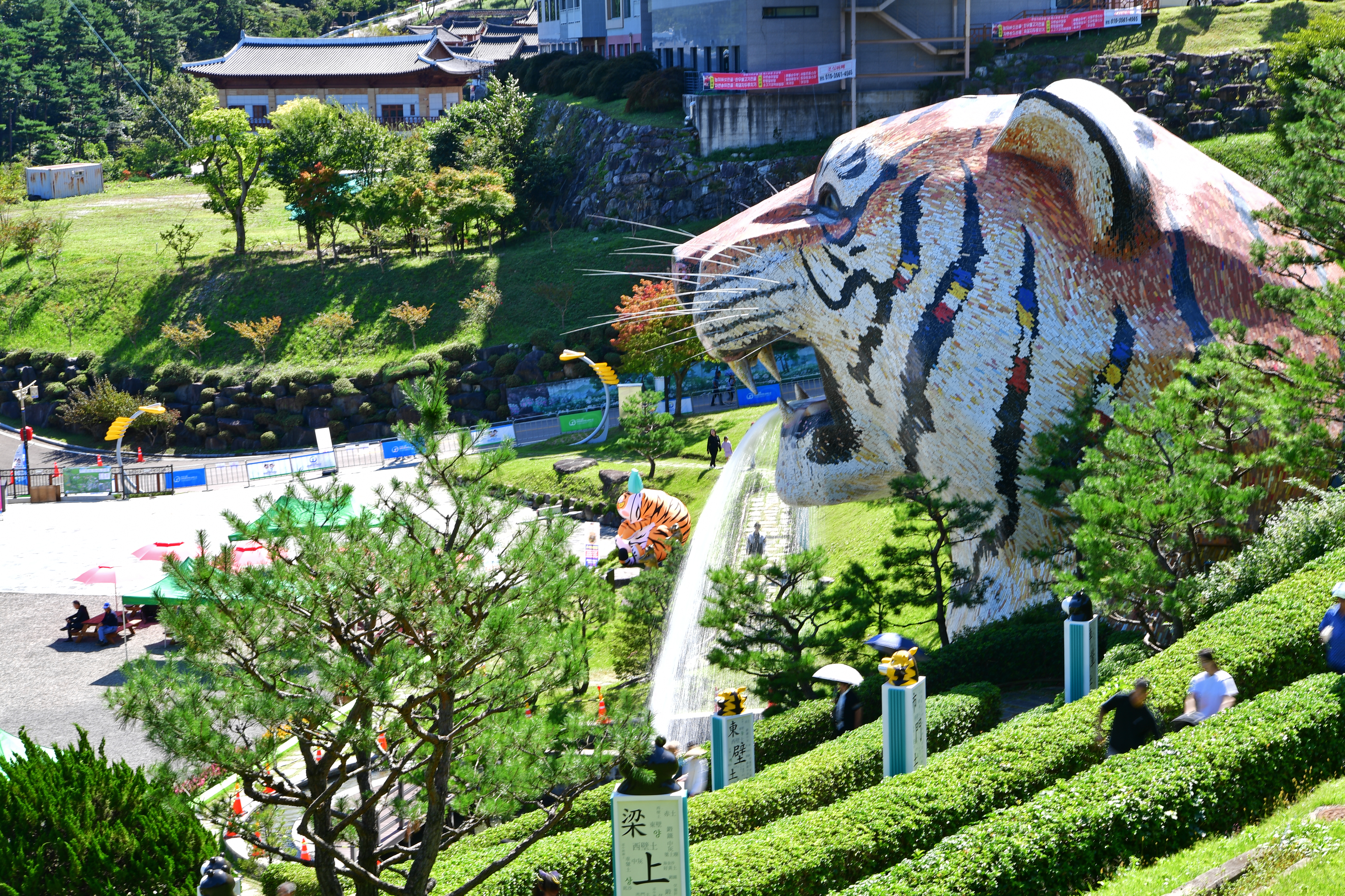 발걸음을 옮깁니다. 얼마가지 않아 동의보감 키즈 체험존의 호랑이 조형물이 보입니다. 큰 입 속에서 시원스레 뿜어내는 물줄기가 인상적입니다. 아래로 내려가 호랑이 정면 모습을 담고 싶었지만, 아이가 없어 패스했습니다. 근데 키즈 체험존인데 호랑이 모습은 좀 무섭기도 합니다.ㅋ;;