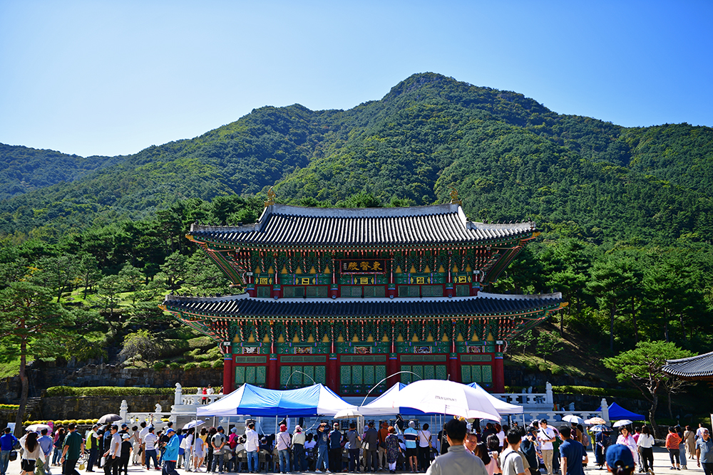 이어서 기 바위가 있는 동의전(東醫殿)으로 향합니다. 대문인 기천문(氣天門)을 지나 동의전으로 들어갑니다. 동의전 앞에 많은 분들이 모여 있습니다. 뭐지??
