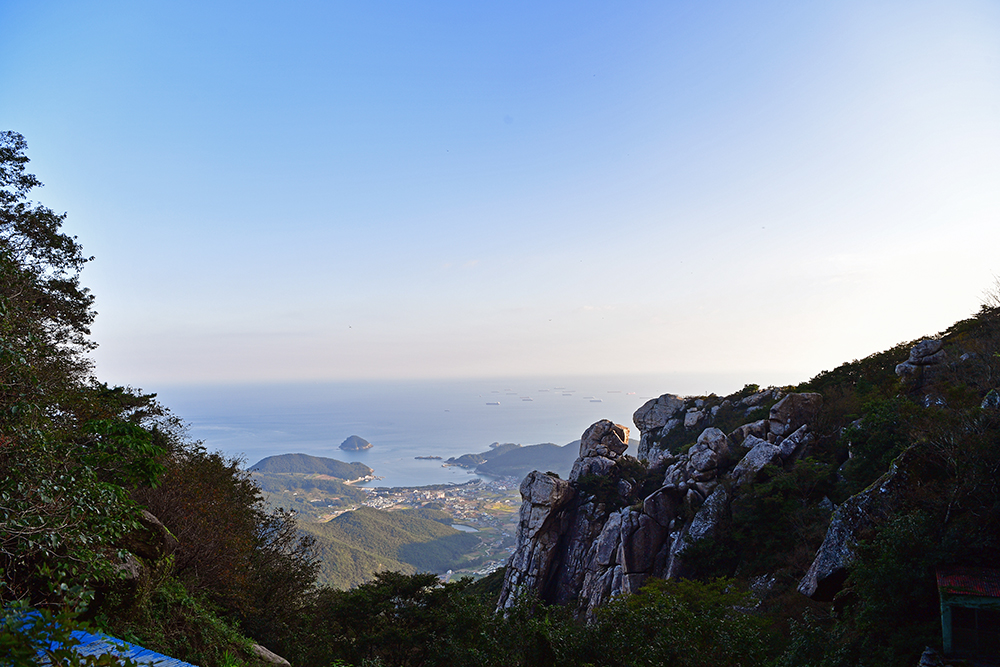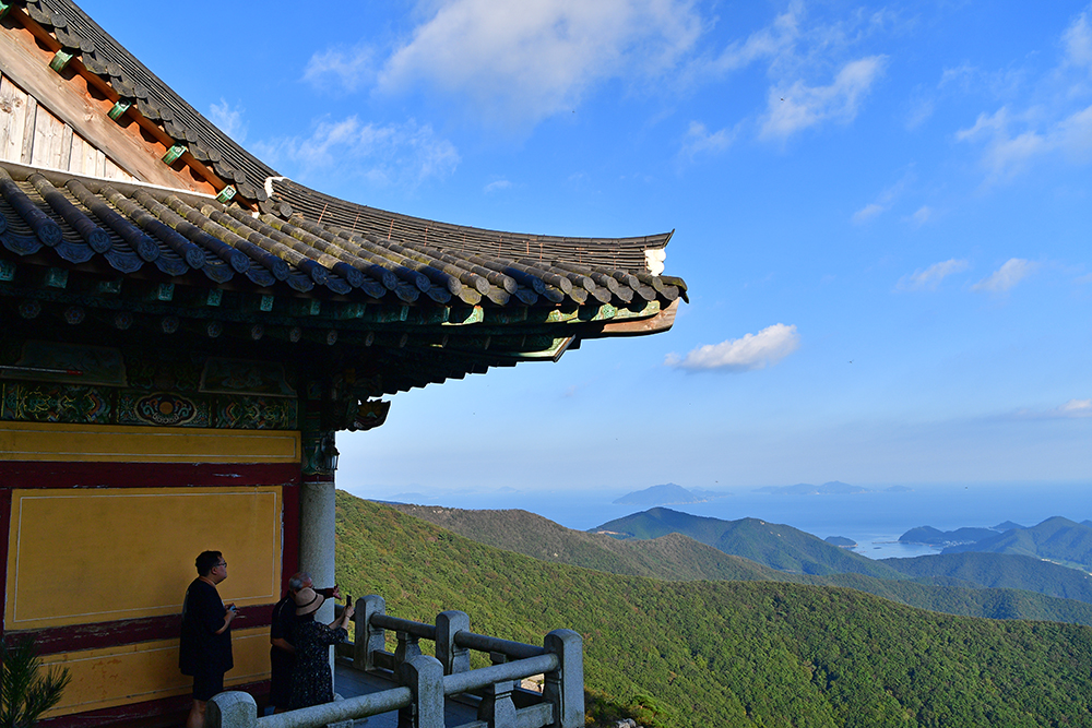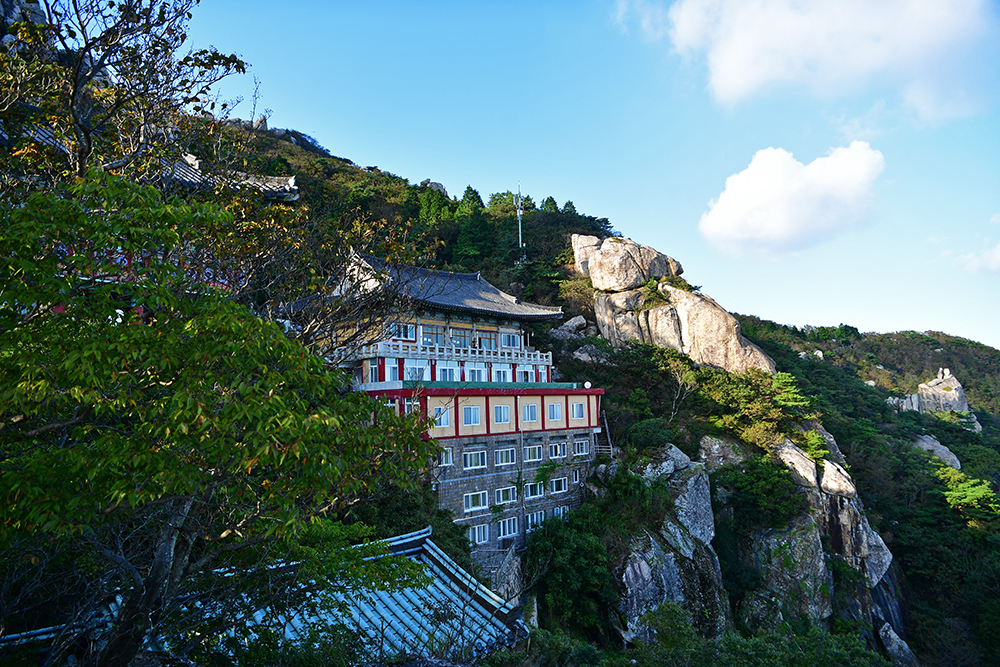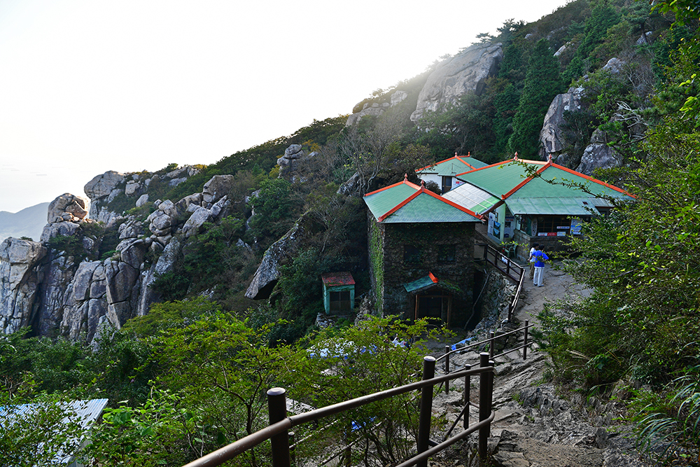 보리암에서 기도를 올린 후 화엄봉으로 발걸음을 옮겼습니다. 화엄봉은 보리암을 배경으로 일출을 담을 수 있는 명소입니다. 이곳에서 보리암을 배경으로 주변 풍경을 즐겨 봅니다.