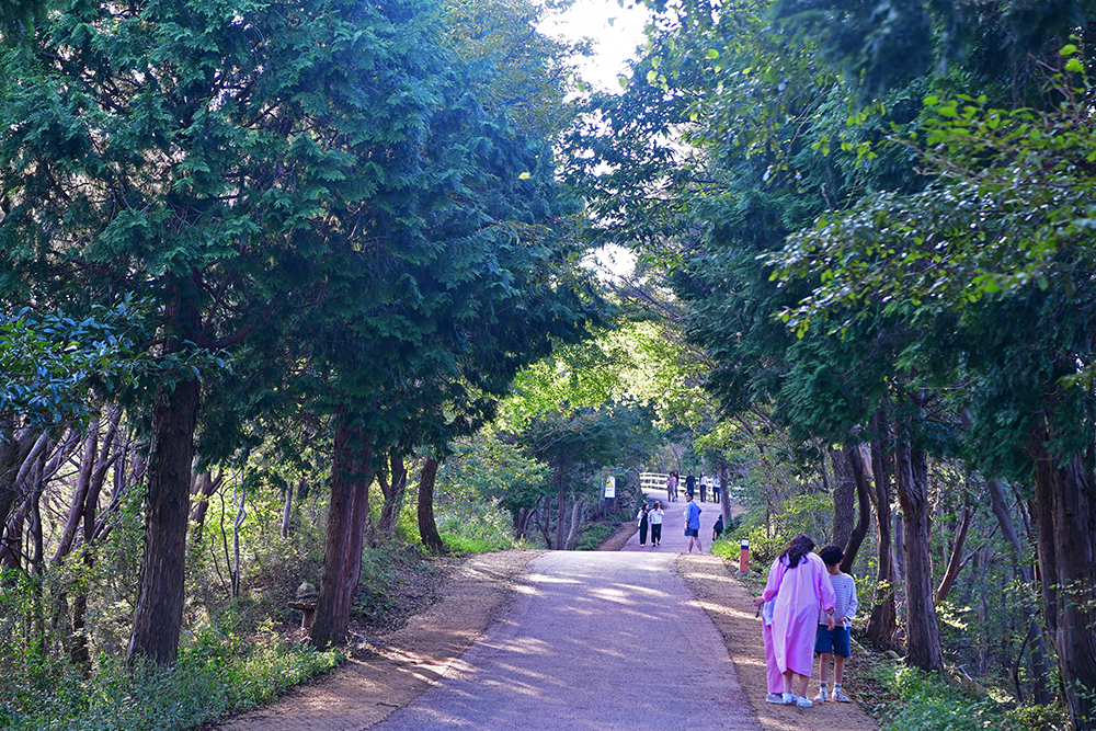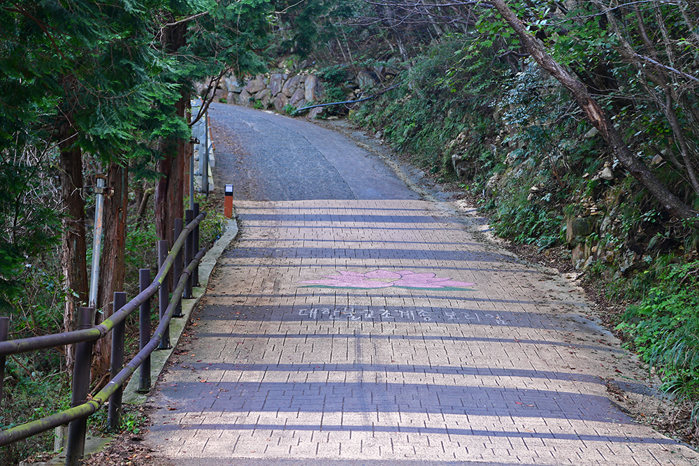 매표소를 지나 임도가 이어집니다. 도로 양 옆으로 울창한 나무가 시원스레 펼쳐집니다. 대략 10여분 정도 걸어가니 보리암 입구가 나타납니다. ㅎㅎ