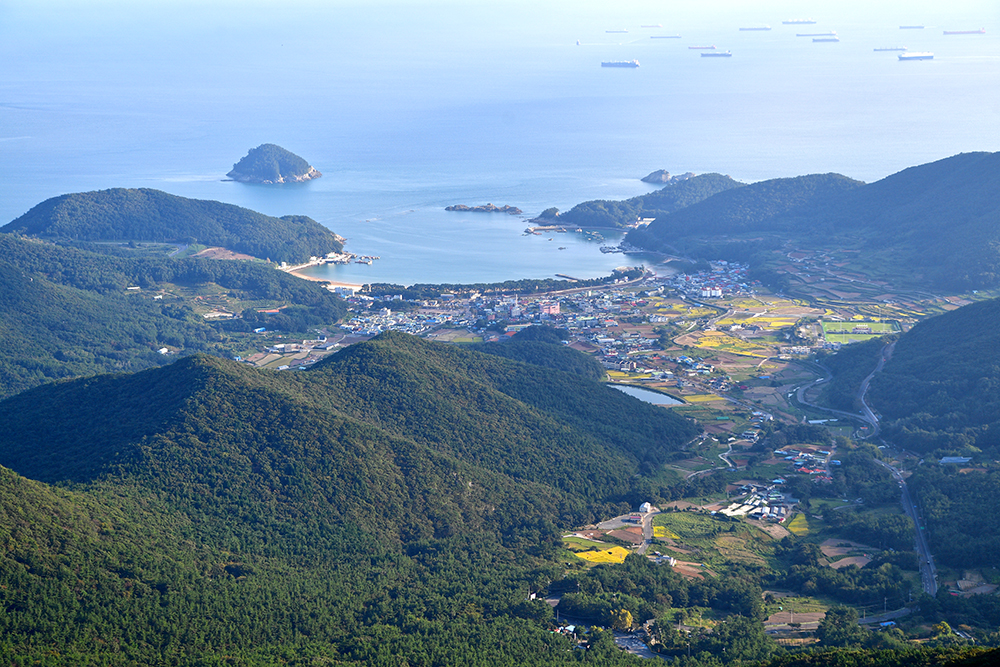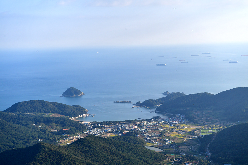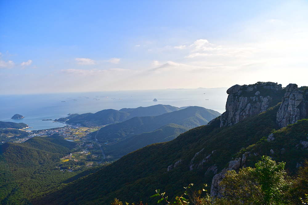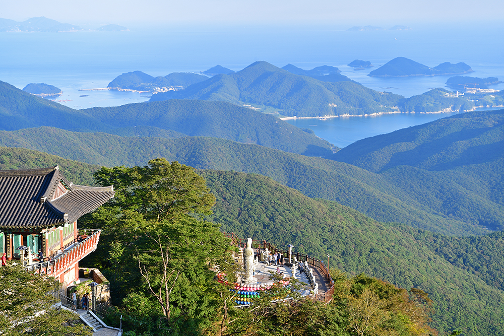 간절한 기도를 올리고 돌아서는데.... 해수관세음보살상(해수관음상) 앞으로 멋진 풍광이 펼쳐집니다. 망원 렌즈를 당겨보니 남해 상주 지역과 상주 은모래해수욕장이 잡힐듯 합니다. ㅎㅎㅎ