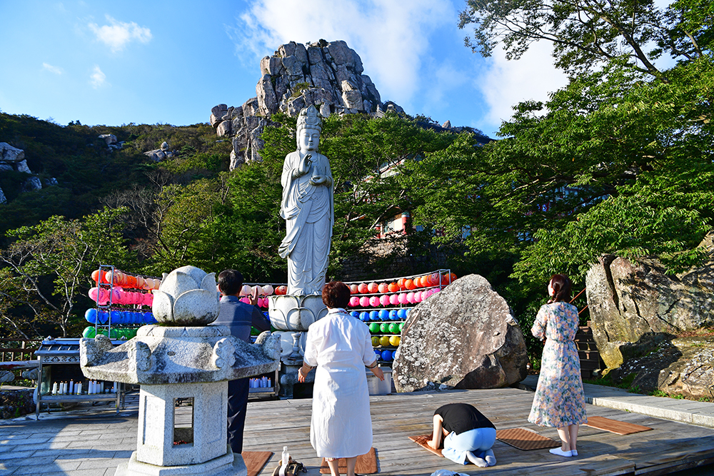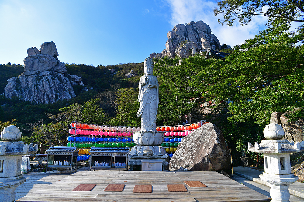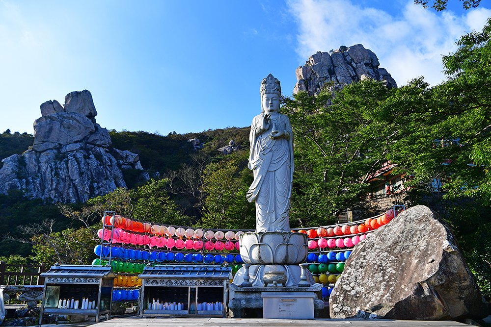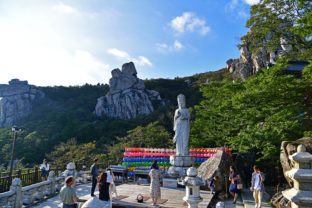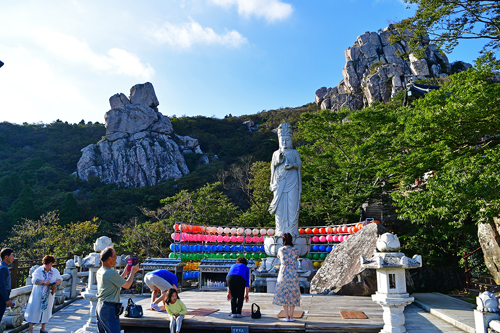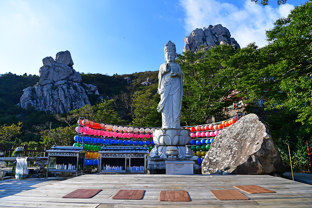 범종각을 돌아가면 뵙고 싶었던 해수관세음보살상 (해수관음상) 이 나타납니다. 보리암의 제 1명소로서, 보리암에 가면 반드시 다녀가야 하는 핫플인 셈이죠~^^