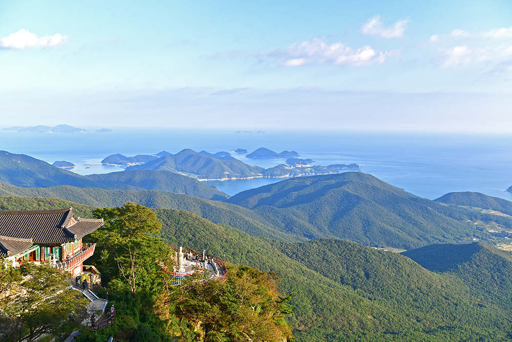 ▼ 화엄봉에서 바라본 보리암 및 주변 풍경