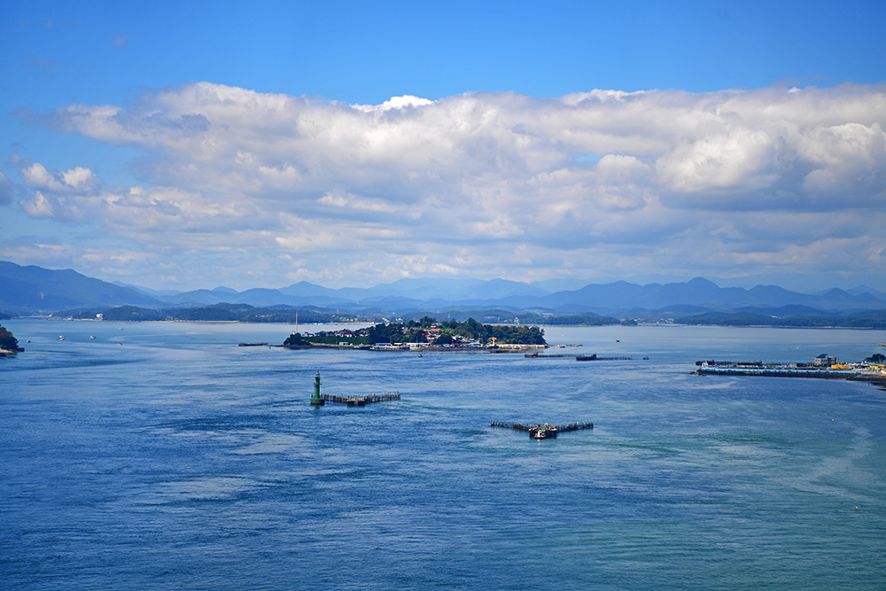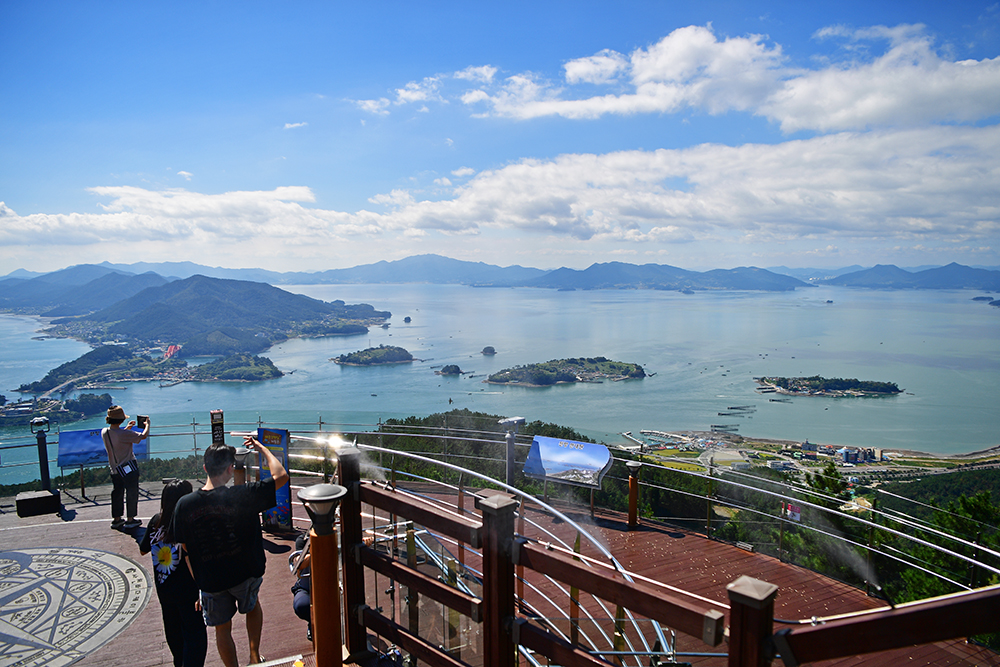 전망대에 서면, 삼천포와 사천 일대의 넓은 바다가 광활하게 펼쳐집니다. 푸른 하늘과 푸른 바다가 어우러진 모습이 정말 장관입니다. 이 멋진 모습을 어떻게 담아야 할지 행복한 고민입니다.ㅎㅎ 먼저 파노라마부터 담으며, 사천 바다의 전경을 천천히 즐겨 봅니다~~^^