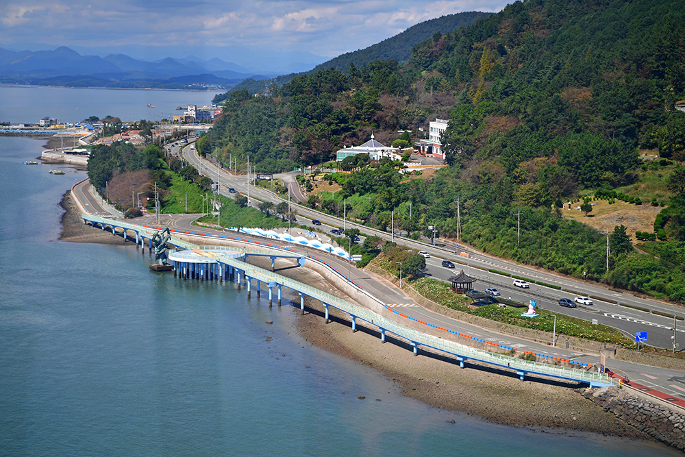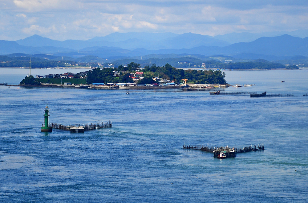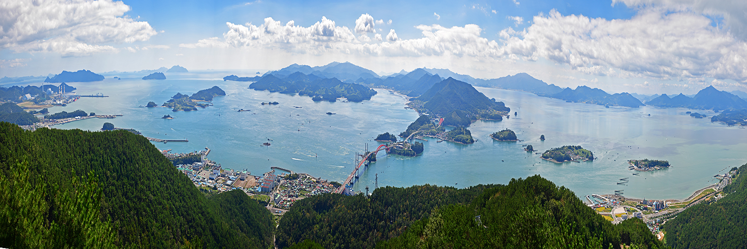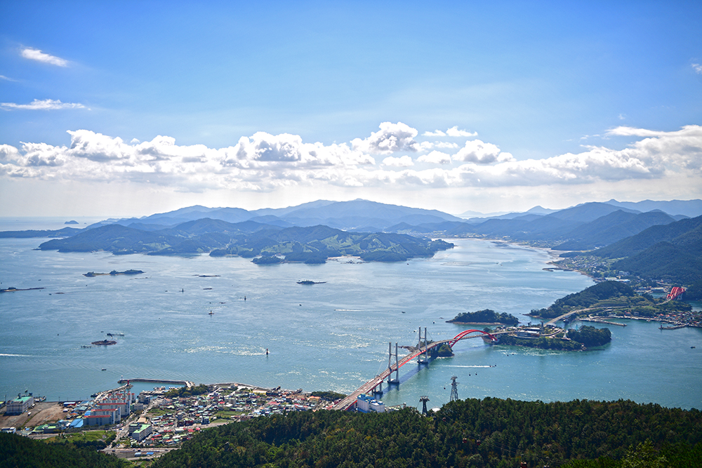 ▼ 사천과 삼천포를 연결하는 남해바다의 파노라마 전경