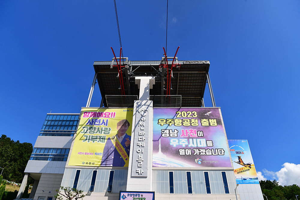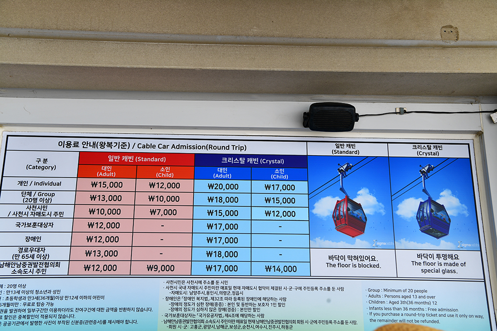 주차장은 여러 곳에 있습니다. 그 중 제2 주차장을 이용한 후, 케이블카 매표소가 있는 대방정류장을 찾았습니다. 건물 입구의 걸린 '장구의 신 박서진' 가수 현수막이 눈길을 끕니다. 이곳 사천 출신인가 봅니다. '미스터트롯 2' 방송에서 응원했던 가수였기에 반가웠습니다. ㅎㅎ 얼른 이용권을 구입한 후 탑승장으로 올랐습니다. ㅎ
