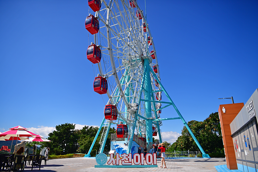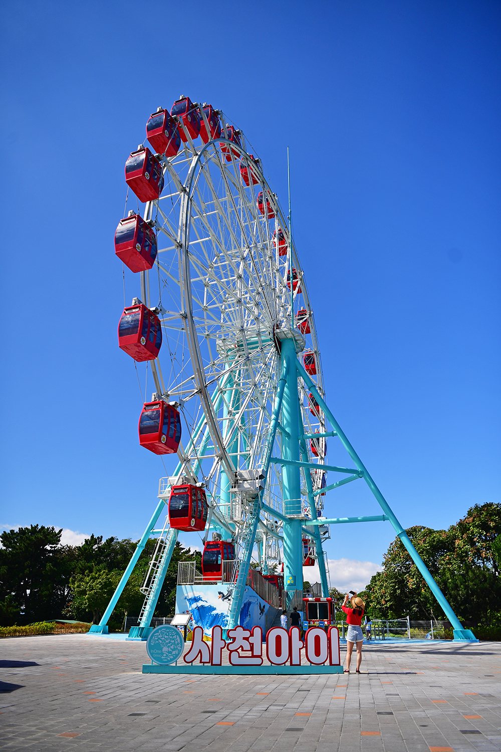 초양도의 명물은 '사천아이' 로 불리는 대관람차 입니다. 푸른 하늘을 배경으로 빨간색 관람차가 참 예쁩니다. '사진아이' 포토존도 함께 있어, 대관람차 배경으로 사진을 담아야 겠다는 생각이 절로 듭니다.ㅎㅎ