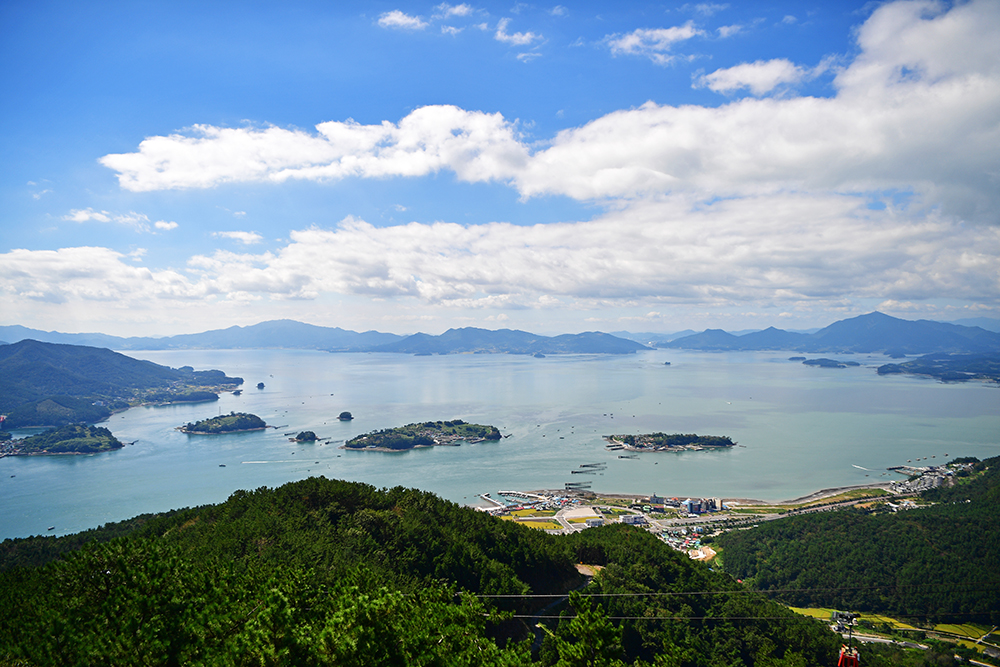케이블 카 안에서는 조신하게 앉아있어야 합니다. 하지만 몸과 마음은 그렇지 않습니다. 하늘 위에서 바라보는 조망을 놓칠수 없기 때문입니다. 양쪽 방향을 조망해 보니, 삼천포 방향 보다 사천 실안 쪽 풍경이 더 멋진것 같습니다.ㅎㅎ