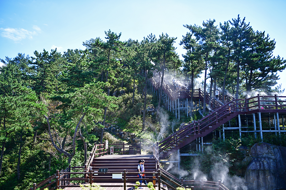 초양도 배 전망대입니다. 푸른 바다 위를 두둥실 떠나는 케이블카가 참 이채롭습니다.ㅎ 푸른 바다를 즐기는데 전망대 바로 아래 쪽에 독특한 모습의 구조물이 눈에 띕니다. 케이블카를 타고 건너올때 특이하게 생각했던 구조물 입니다.