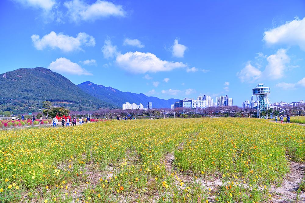 경남 양산의 황산공원은 지금 가을꽃들이 한창입니다. 전통의 가을꽃인 코스모스와 갈대, 새롭게 뜨고 있는 댑싸리와 황화코스모스가 조화롭게 익어가고 있습니다. 아마도 이번 주말 쯤 절정일것 같습니다. 가을꽃이 익어가는 양산 황산공원 가을나들이를 즐겨 보시기 바랍니다. ㅎㅎ