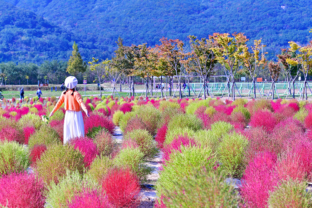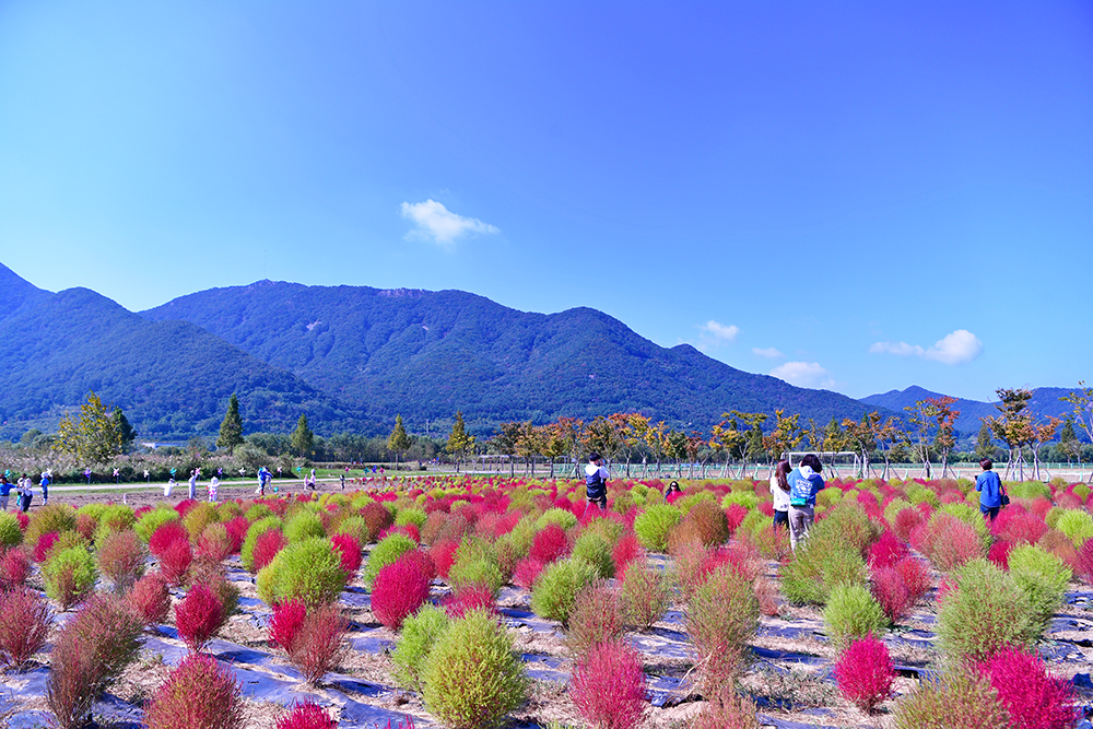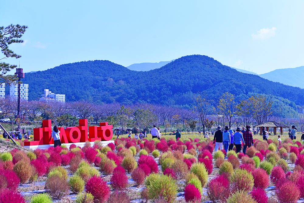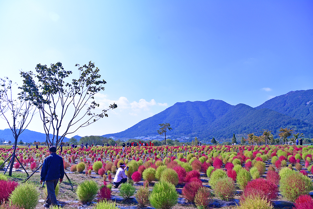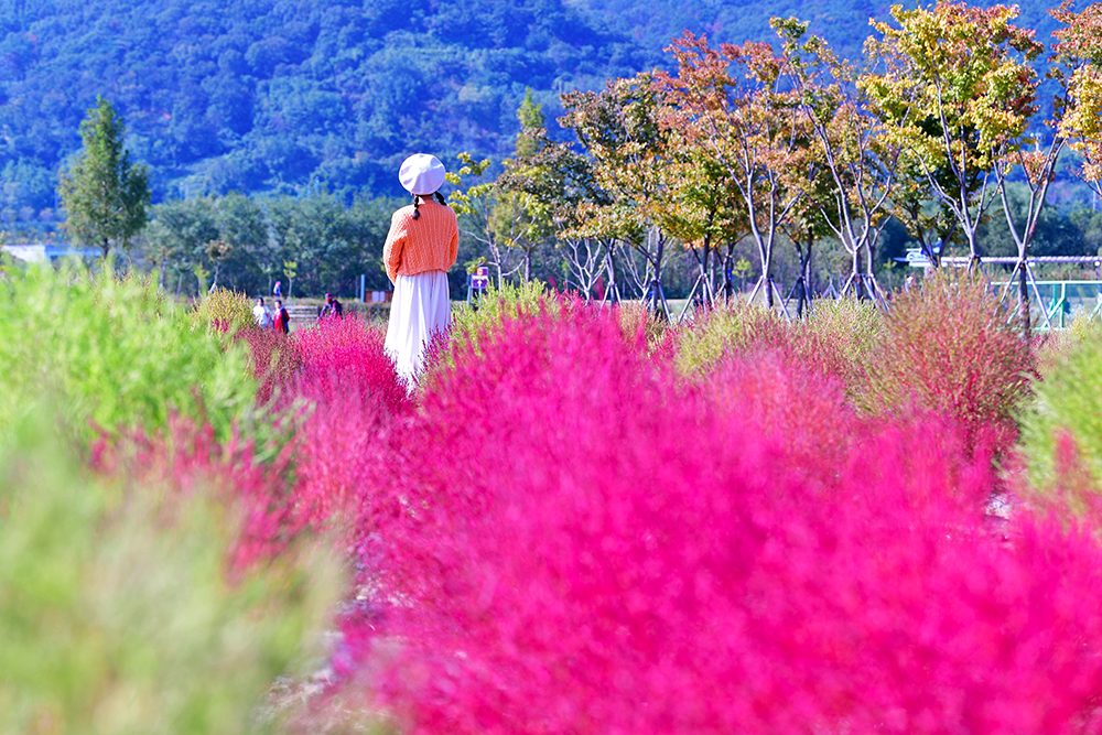 논에 있는 벼들은 노란색으로, 가을 꽃은 형형색색으로, 나뭇잎들은 알록달록한 색으로 물들고 있습니다. 지금은 저마다 가을색으로 물들며, 가을이 한창 익어가는 중입니다. 예쁘게 익어가는 가을을 즐기고 싶습니다. 어디로 가볼까? 가까운 곳에 좋은 곳이 있습니다. 댑싸리을 비롯한 가을꽃이 예쁘게 익어가고 있는 경남 양산의 황산공원입니다.