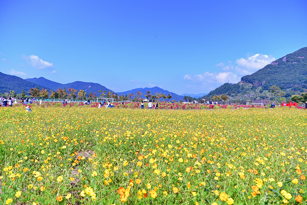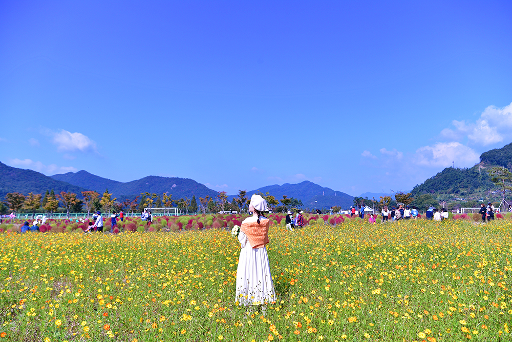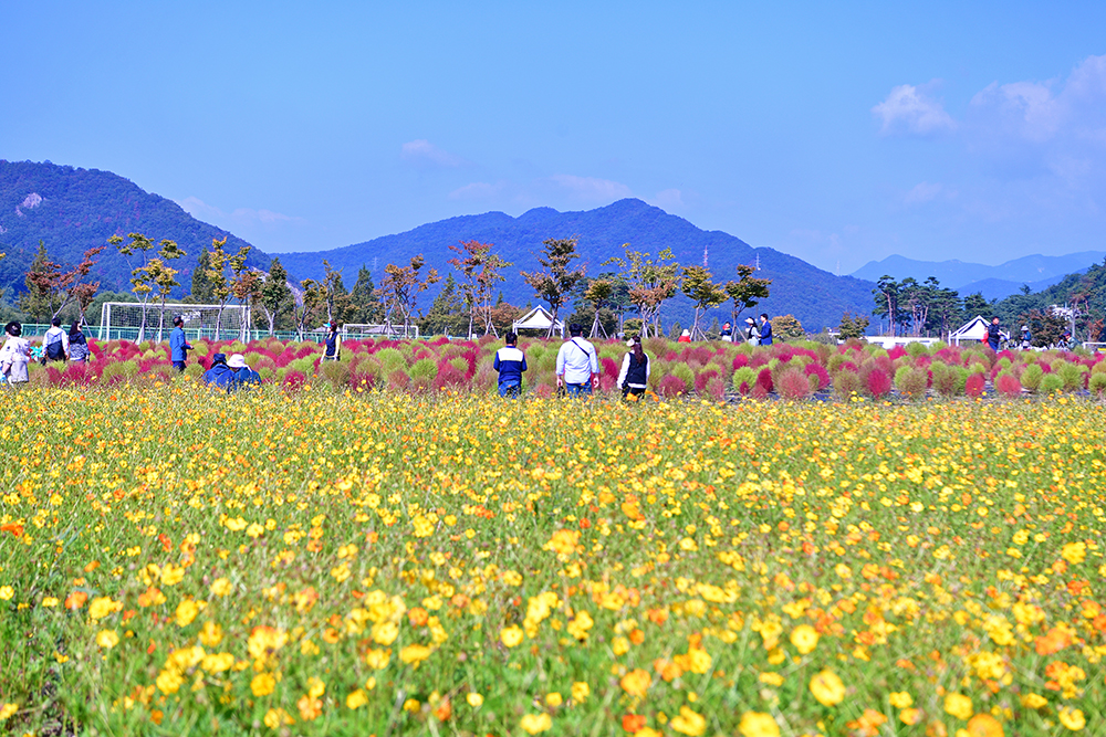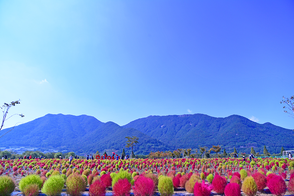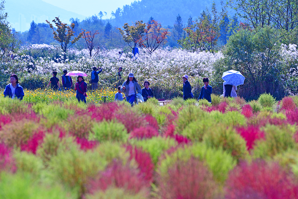 논에 있는 벼들은 노란색으로, 가을 꽃은 형형색색으로, 나뭇잎들은 알록달록한 색으로 물들고 있습니다. 지금은 저마다 가을색으로 물들며, 가을이 한창 익어가는 중입니다. 예쁘게 익어가는 가을을 즐기고 싶습니다. 어디로 가볼까? 가까운 곳에 좋은 곳이 있습니다. 댑싸리을 비롯한 가을꽃이 예쁘게 익어가고 있는 경남 양산의 황산공원입니다.