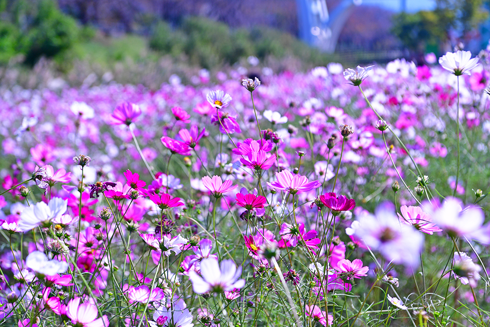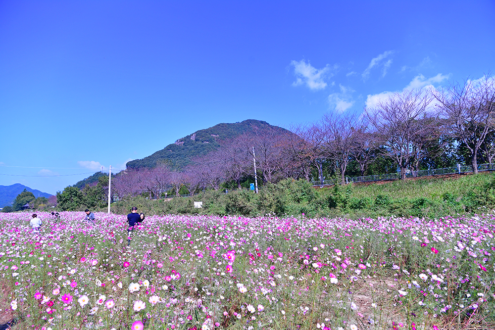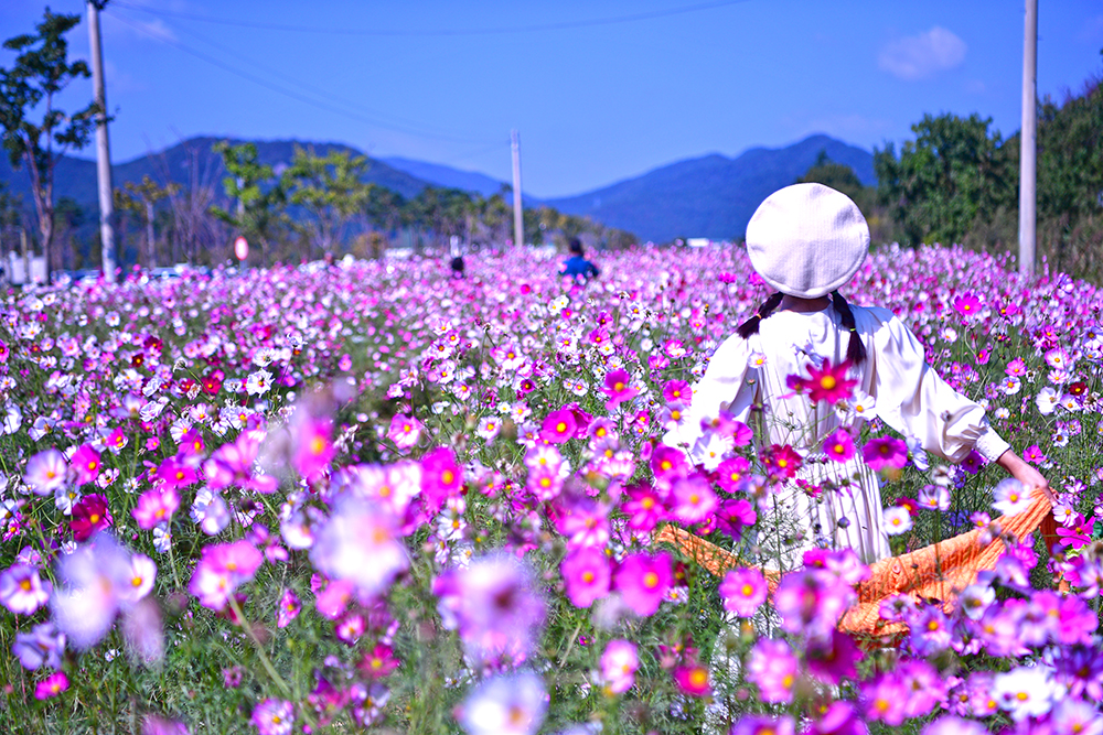 황화코스모스를 둘러본 후 주차장으로 돌아가는 길에는 코스모스가 활짝 피어 있습니다. 예쁜 코스모스 군락을 보니 반갑고 정겹습니다. 역시 가을에는 알록달록한 코스모스가 있어 제격입니다. ㅎ