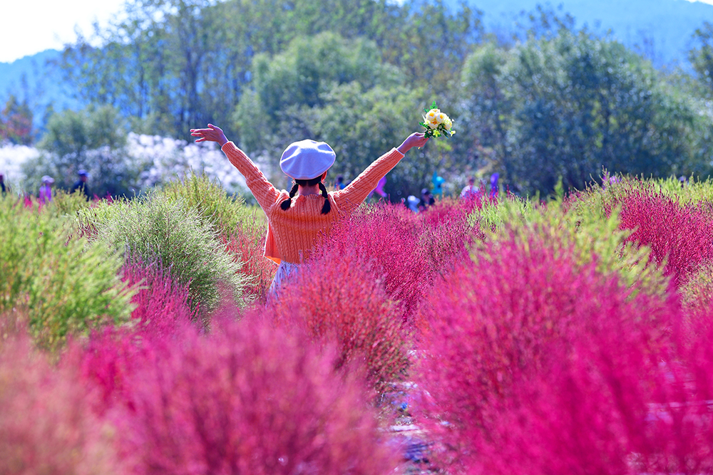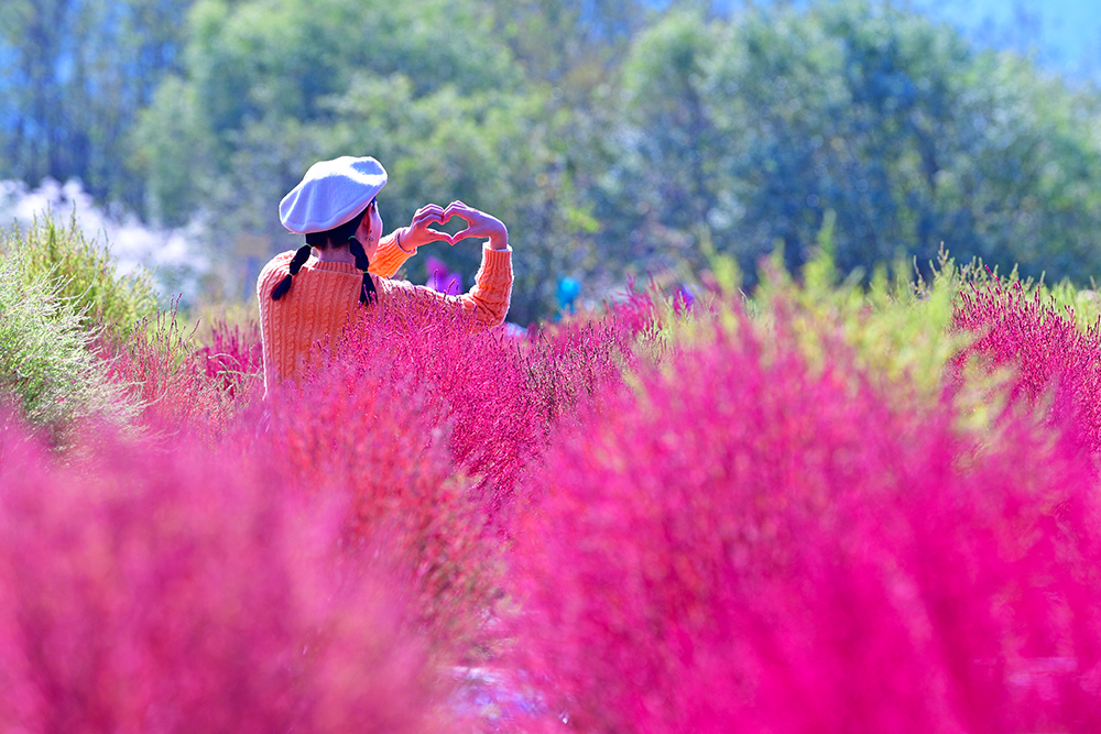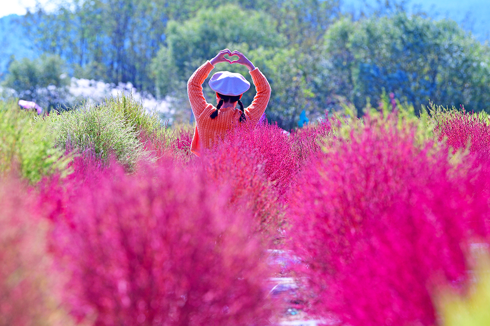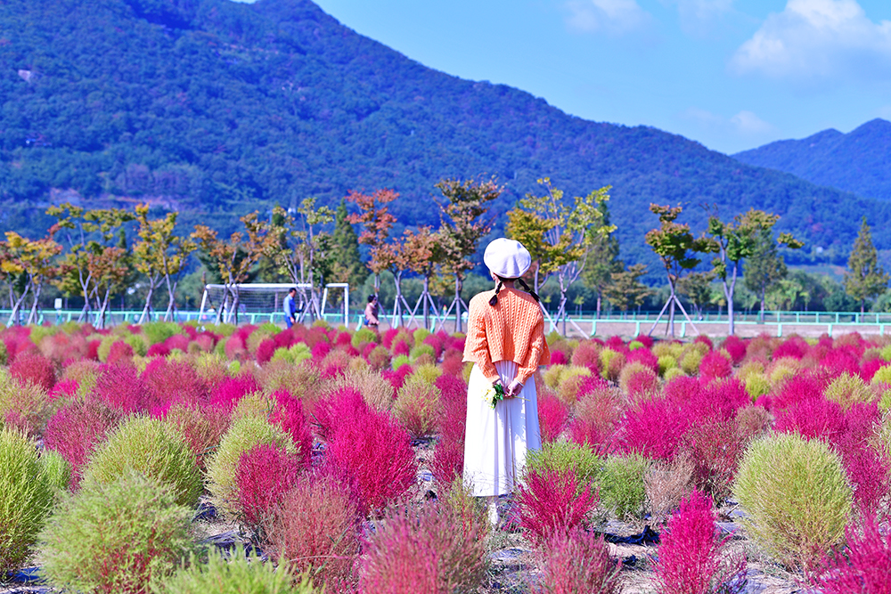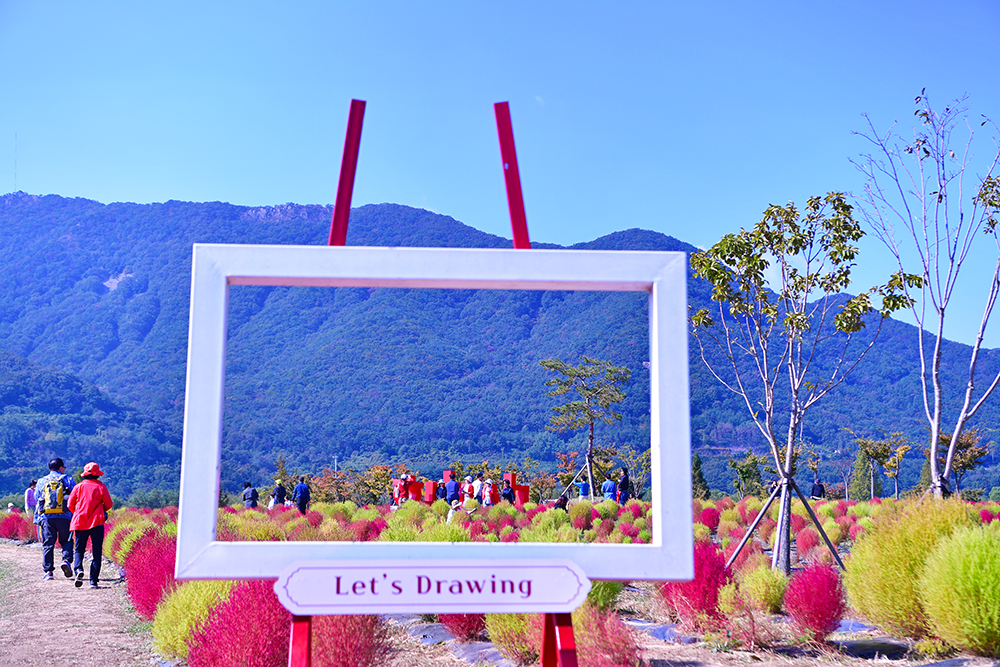 군락지 속으로 들어가 예쁜 댑싸리를 둘러 봅니다. 아름다운 댑싸리 군락 사이를 거니는 방문객들의 모습이 즐거워 보입니다. 댑싸리를 즐기는 방문객의 모습을 담아 봅니다. ㅎ
