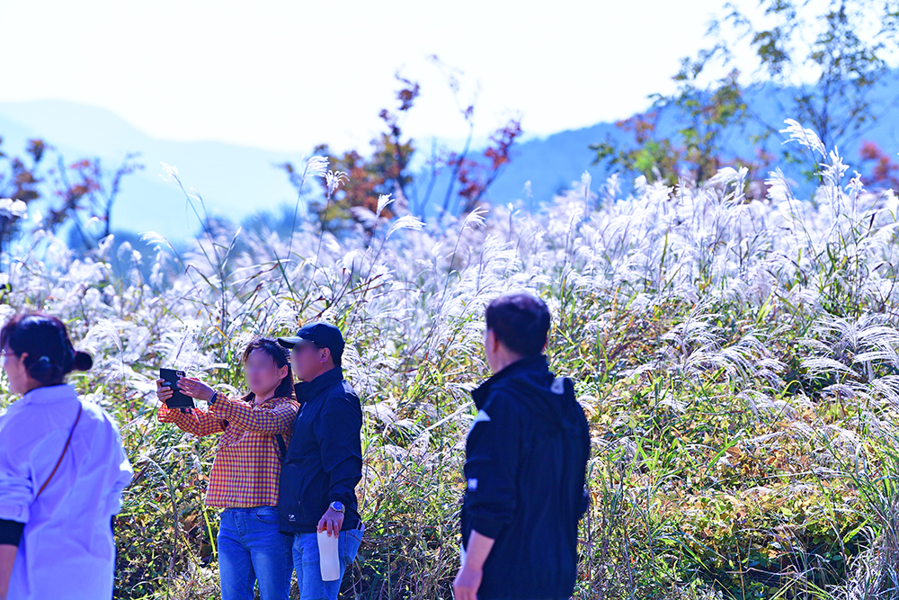 댑싸리 군락지에서 한참을 즐기는데, 한쪽 끝에서 반짝거리는 것이 있습니다. 햇빛을 머금은 은빛 갈대(?)입니다. 눈이 부실 정도라면 과장이겠지만, 그 모습이 너무 예쁩니다. 은빛 갈대와 어우러진 모습을 담아봅니다. ㅎ