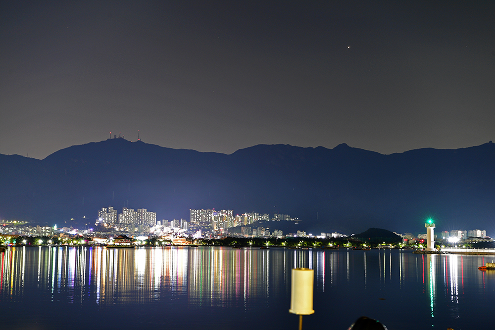날씨가 추워지면, 야경은 더 깨끗해집니다. 그래서 새로운 야경을 즐겨보려는 욕심에, 한적한 시간에 맞춰 속천항 카페거리를 찾았습니다. 주차는 진해수협을 이용했습니다. 그런 후 진해수협 앞 속천항 야경부터 즐겨 봅니다. 잔잔한 바다를 품은 속천항 야경이 참 평온해 보입니다. ㅎ